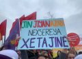 İSTANBUL –Kadıköy’de bir araya gelen binlerce kadın, “Yoksulluğa, erkek şiddetine, savaşa, emek sömürüsüne karşı sokakları terk etmeyeceğiz. Haklarımız, hayatlarımız için mücadelemizi büyüteceğiz” mesajı verdi. DEM Parti İstanbul Büyükşehir Belediyesi Eşbaşkan adayı Meral Danış Beştaş, kadın milletvekilleri ve yüzlerce kadın, DEM Parti İlçe Örgütü binası önünde yöresel kıyafetlerle buluşmaya katıldı. Kadınlar, alkış ve zılgıtlarla, erbane ve Kürtçe stranlar eşliğinde uzun süre halay çekti. Kadınlar, sık sık, “Jin, jiyan, azadî” ve “Bijî berxwedana zindanan” sloganları attı.