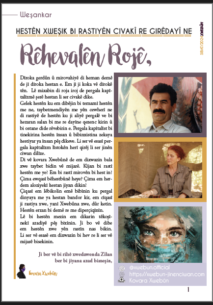 HABER MERKEZİ – Avrupa’daki genç kadınlara yönelik olan Xwebûn dergisinin 28. sayısı yayımlandı. Konusu ‘Hest û Hestiyarbuyîn’ olan dergi ‘Hestên xweşik bi rastiyên civakî re girêdayî ne’ (Güzel duygular toplum gerçeğiyle bağlantılıdır) sloganıyla kendisini yeniledi.