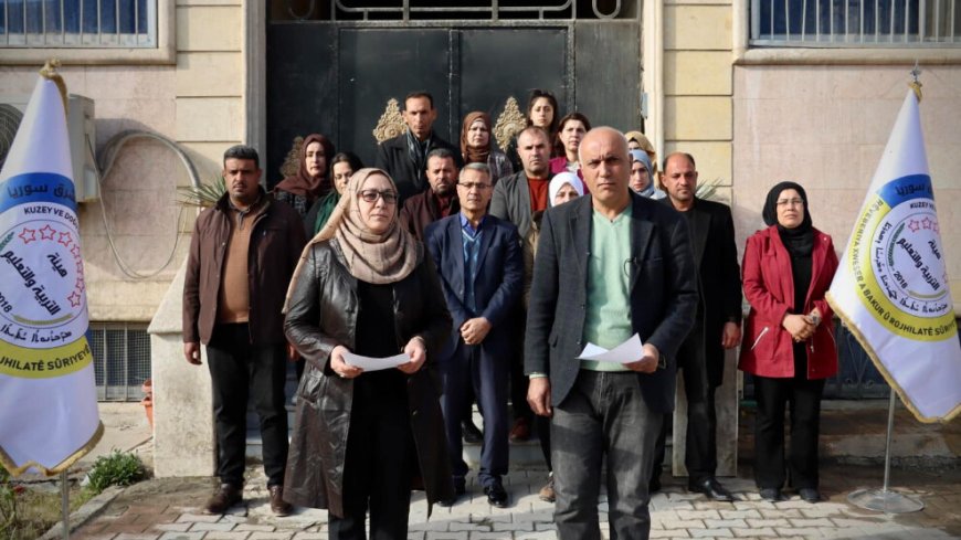 Kuzey ve Doğu Suriye Demokratik Özerk Yönetim Eğitim ve Öğretim Komitesi, işgalci Türk devletinin 23-25 Aralık (2023) tarihlerinde bölgeye yönelik saldırılarının etkilerine ilişkin basın açıklaması yaptı.