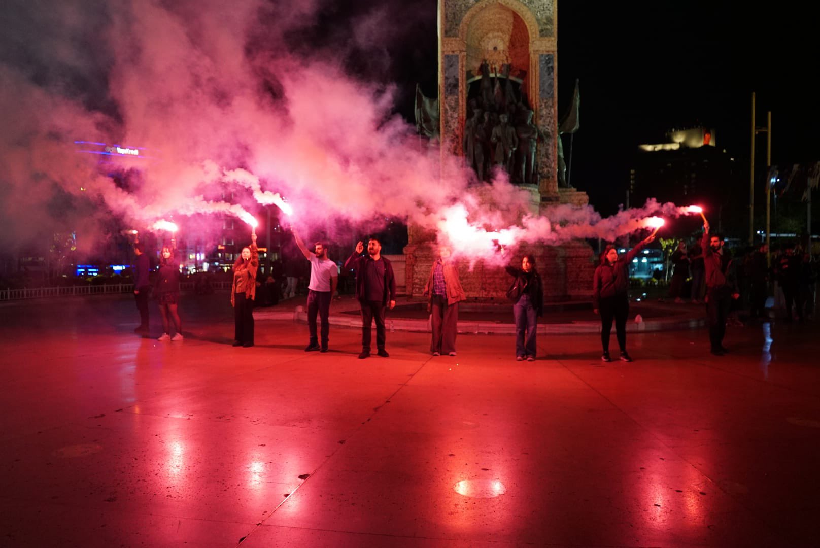 İSTANBUL- İstanbul Valiliği’nin, DİSK’in 1 Mayıs için Taksim Meydanı’na yaptığı başvuruyu “yasak” kararıyla yanıtlamasının ardından Devrimci Gençlik Dernekleri (DGD) meşalelerle Taksim Meydanı’na çıktı. Meydanda yapılan konuşmada şunlar söylendi: