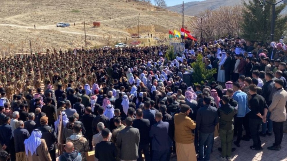 ŞENGAL – İşgalci Türk devletinin dün Berava köyü yakınlarında Silahlı İnsansız Hava Araçları (SİHA) ile saldırısında şehit düşen Şengal Direniş Birlikleri (YBŞ) Komutanı Pîr Çeko (Seed Ali Bedel) için binlerce kişinin katılımıyla tören düzenlendi. Çeko’nun cenazesi Xanesor Şehitleri Hastanesi’nden alınıp Dahola ilçesine bağlı Belistên köyündeki evine götürüldü. Daha sonra araç konvoyları eşliğinde Şehit Dilgeş ve Şehit Berxwedan Mezarlığı’na götürüldü.
