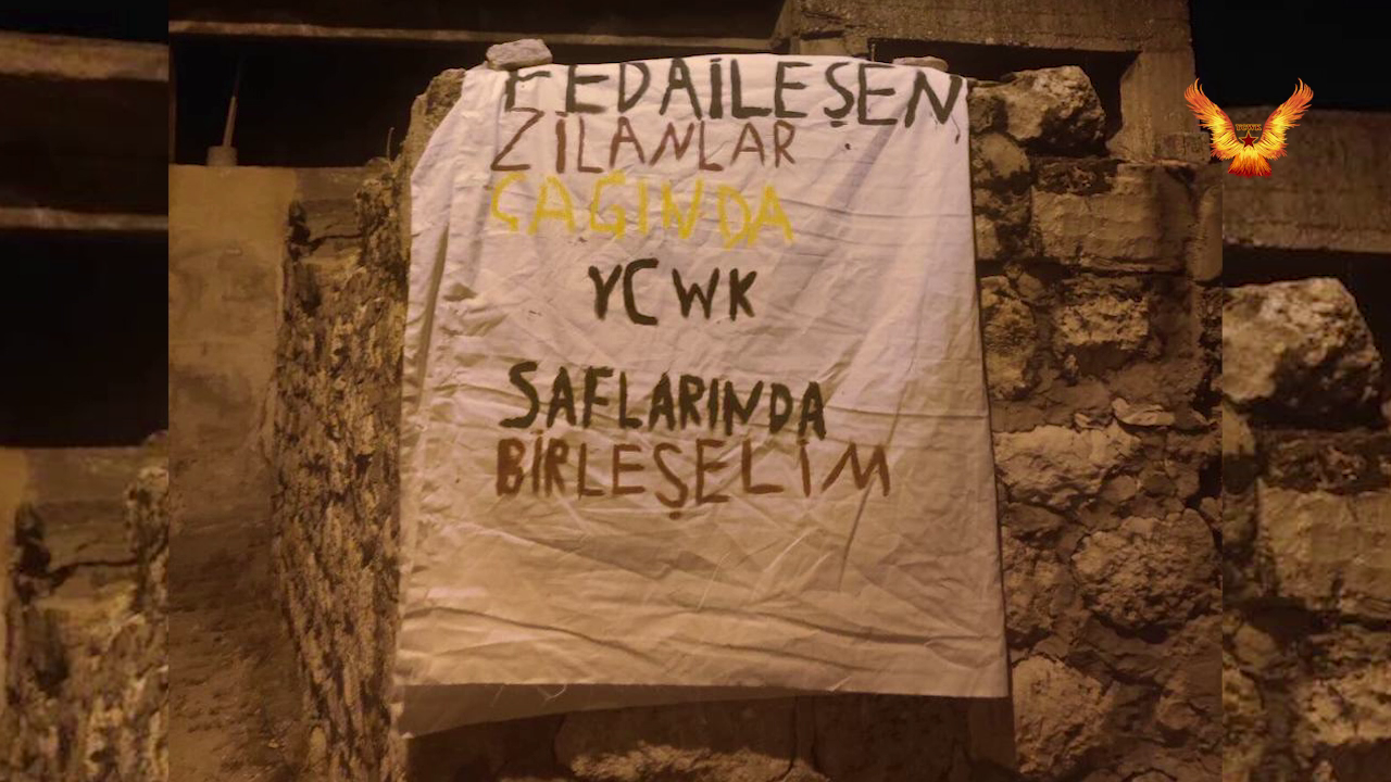 HABER MERKEZİ- “Mücadeleyle Bütünleşelim Önder APO ile Özgürleşelim” hamlesi çerçevesinde YCWK Merdîn Birimleri Şehit Zilan’ın (Zeynep Kınacı) 28. şehadet yıldönümü vesilesiyle 22-23 Haziran günleri Şehîd Zîlan’ı anmak ve Şehitliklere yöenelik yapılan saldırılara karşı bir dizi eylem gerçekleştirdi. Şehit Zİlan’ın mücadele hayatını anlatan bir vide izleyen gençler aynı zamanda bir çok yerde yazılama, pankart asma ve ses çıkarma eylemleri gerçekleştirdi.
