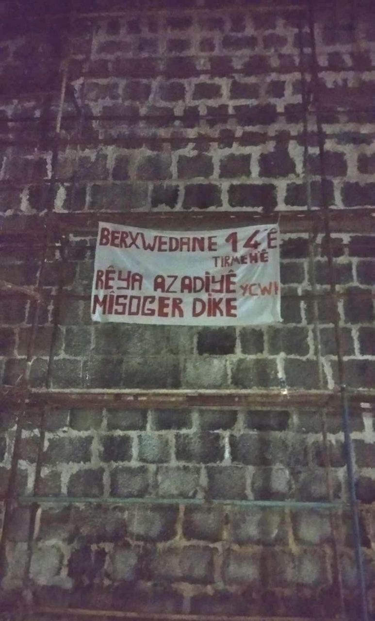 Amed’in Sûr ilçesinde bulunan Keçi Burcu’na ise “Berxwedana 14’ê Tirmehê rêya azadiyê mîsoger dike” (14 Temmuz Direnişi özgürlük yolunu garantiledi) yazılı pankart asıldı.