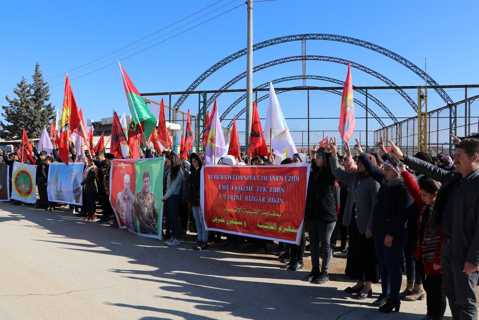 Babnis stadyum alanında durarak mitinge dönüşen eylemde, Yekitiya Ciwanên Êzidî üyeleri Esad Seydo ve Xedice Hemo açıklama metnini okudu.