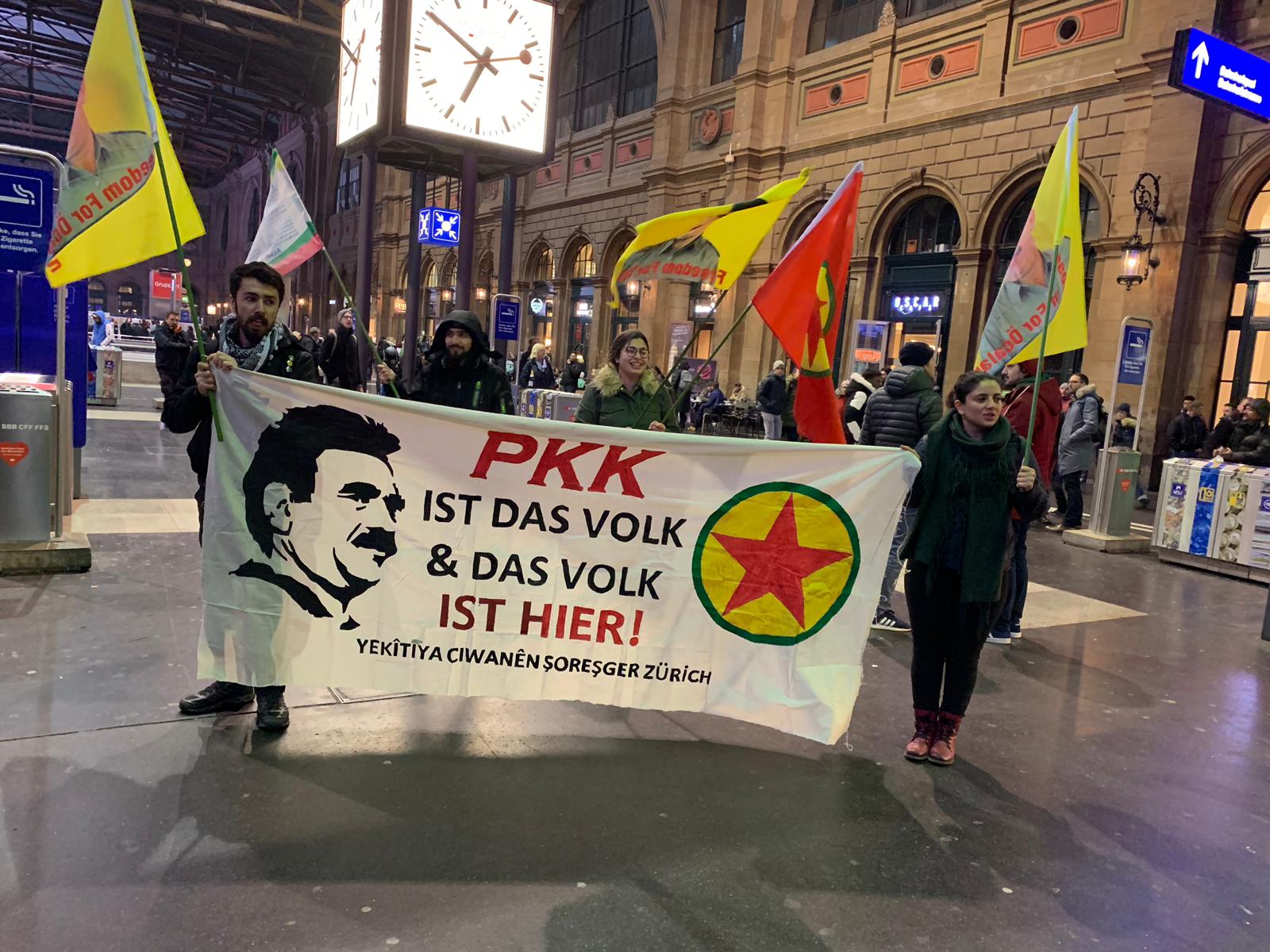 ZÜRİH – Yekîtiya Ciwanên Şoreşger aktivisti Kürdistanlı gençler İsviçre’nin Zürih kantonunda tecride karşı eyleme geçti. Merkez tren istasyonunda pankartlarını ve bayraklarını açan gençler “Bijî Serok APO” sloganları ile istasyonda seslerini duyurdu. İsviçre’nin en işlek istasyonu olan Zürih merkez tren istasyonunda bulunanlar eylemcilere destek verdi.