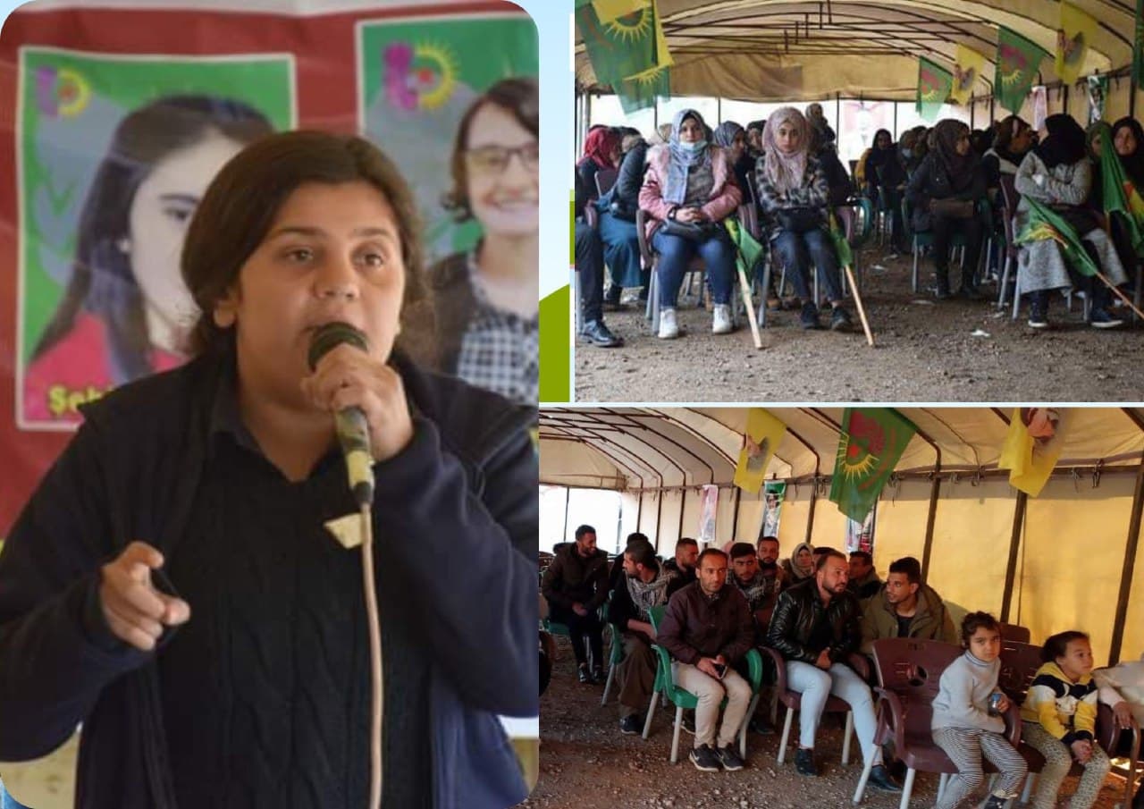 Burada konuşma yapan Yekîtîya Jinên Ciwan yöneticilerinden Sema Hesen, işgalci Türk devletinin işlediği suçların demokratik ulus projesine son verme çabası olduğunu söyledi.
