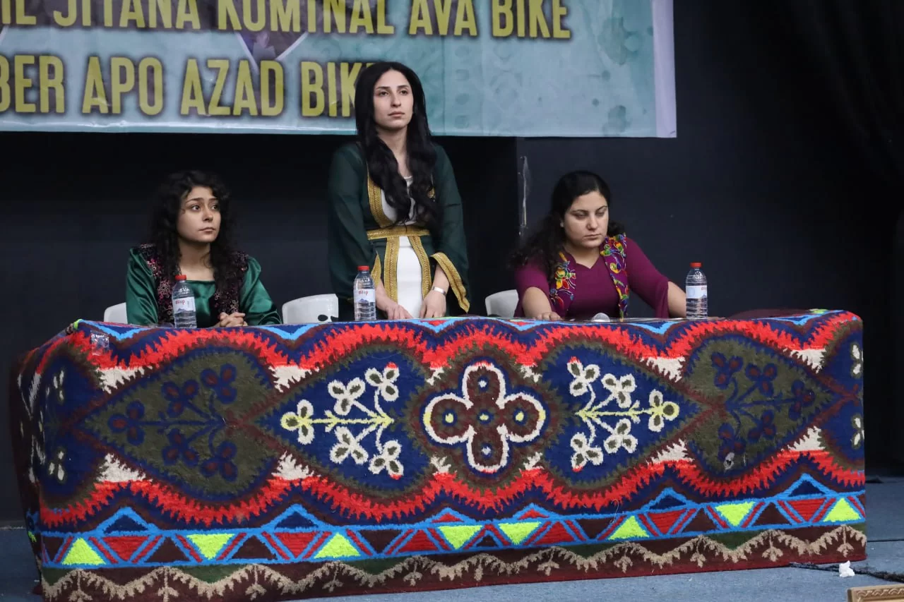 Ardından, Önder Apo’nun genç kadınların toplumdaki rol ve misyonuna ilişkin perspektifleri, Hesekê Yekîtiya Jinên Ciwan Üyesi Şam El-Zên tarafından okundu.