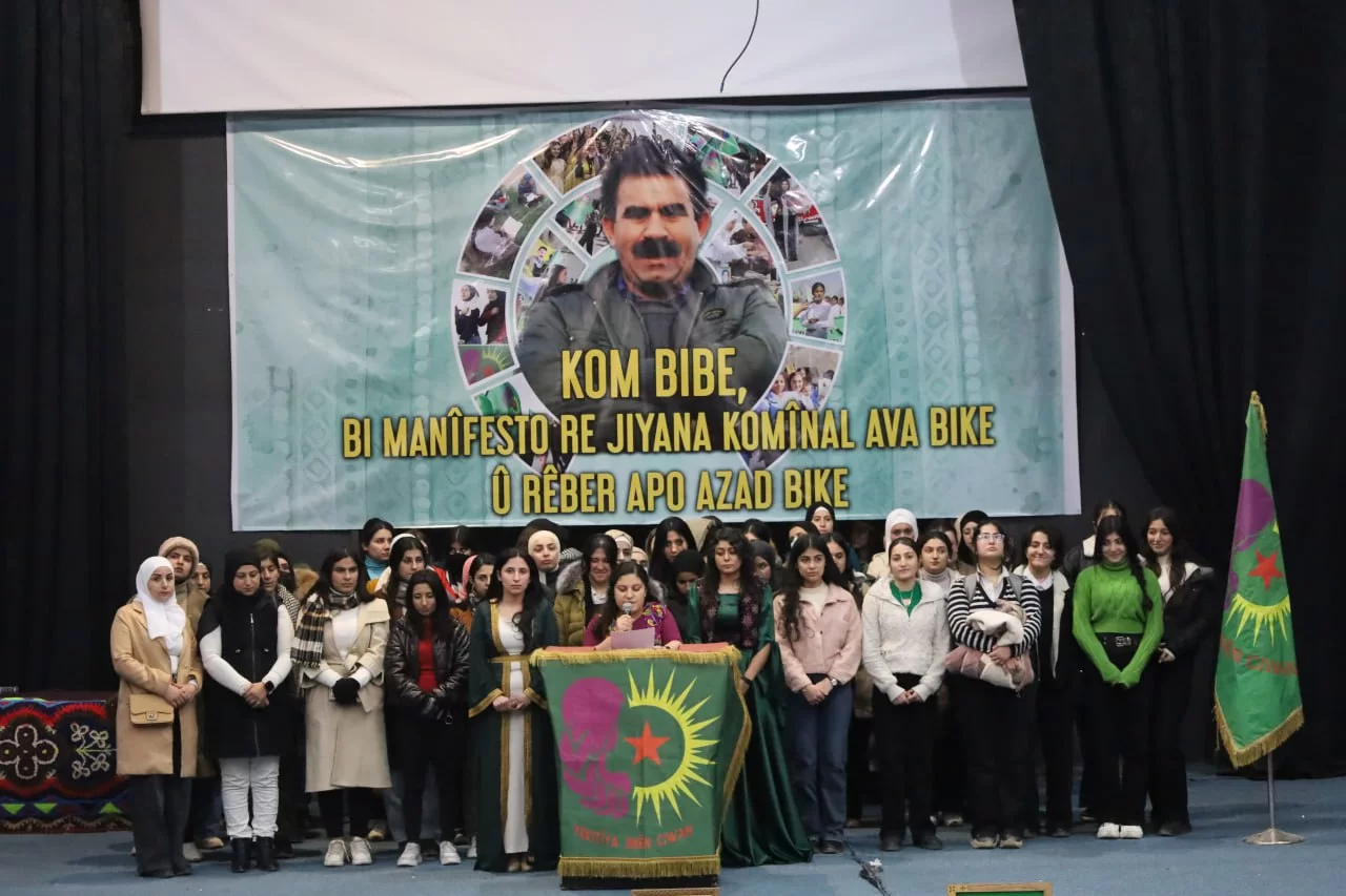“Genç kadınlar olarak, Önder Apo’nun fiziksel özgürlüğünü gerçekleştirmek için faaliyetlerde bulunacağız ve Önder APO felsefesi temelinde mücadelemizi sürdüreceğiz.”