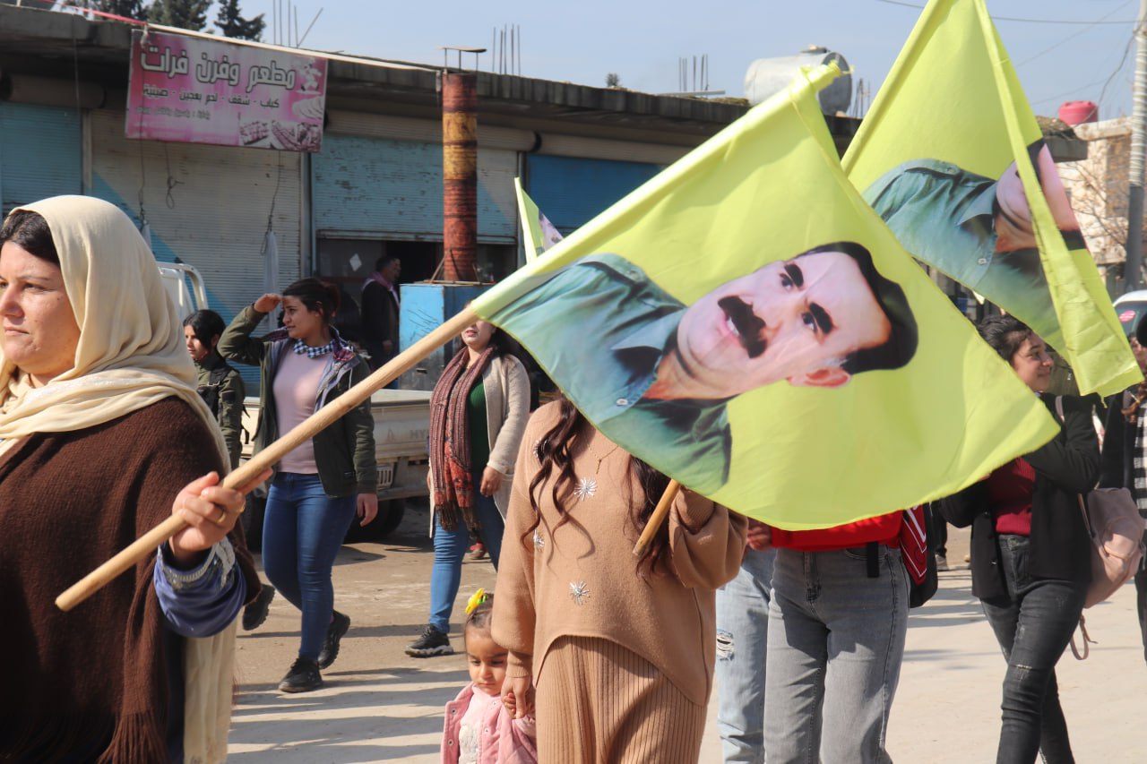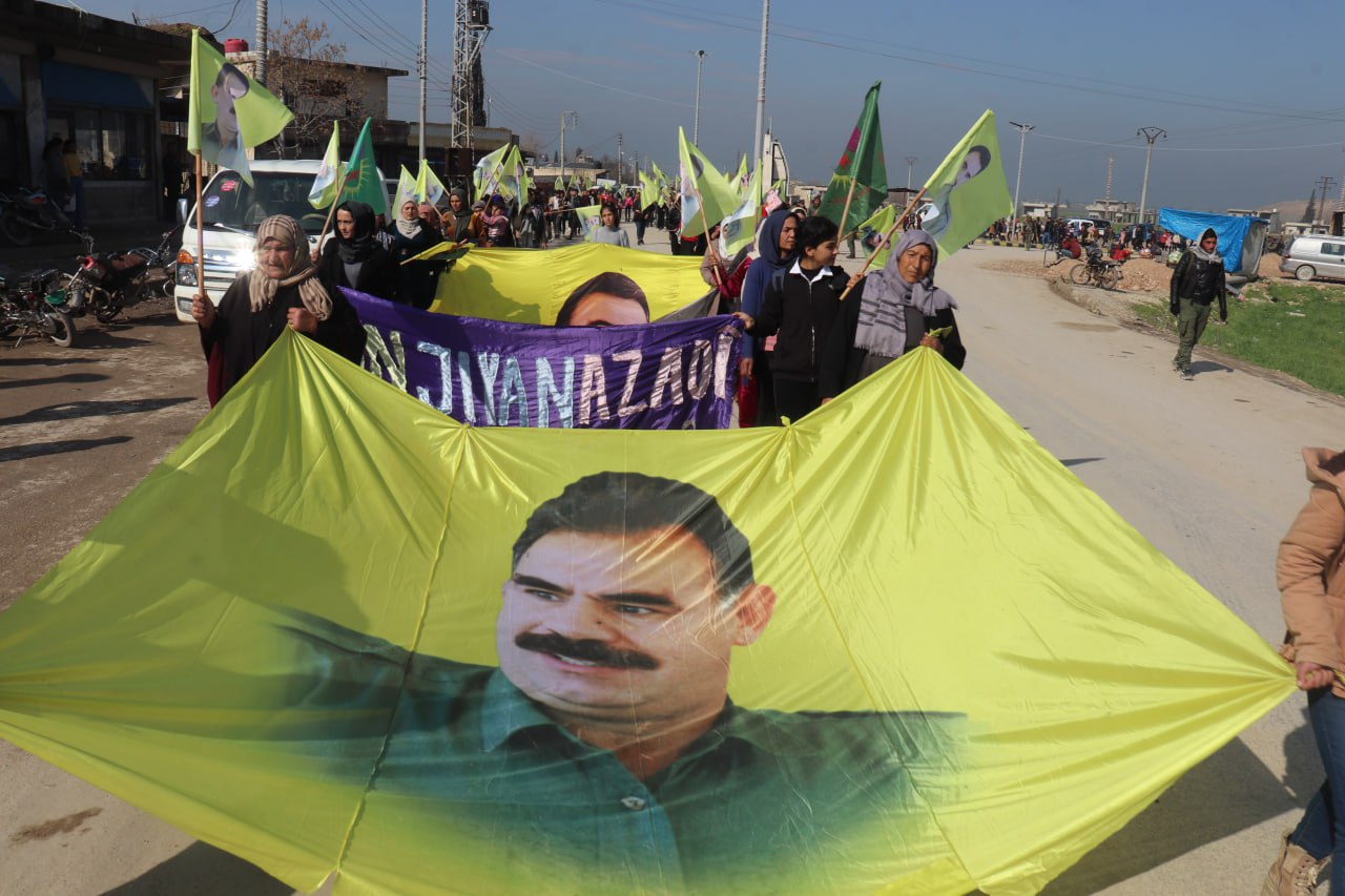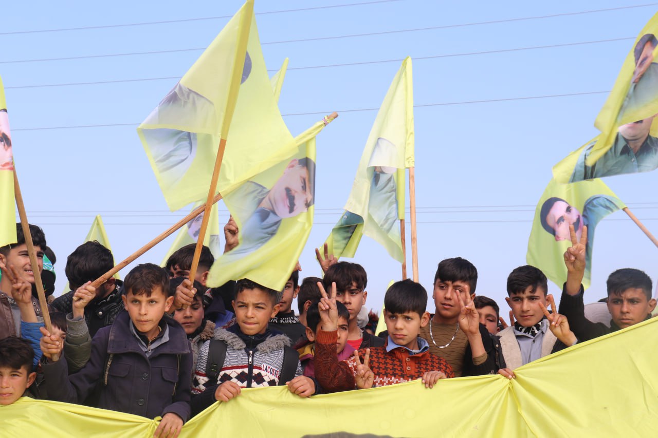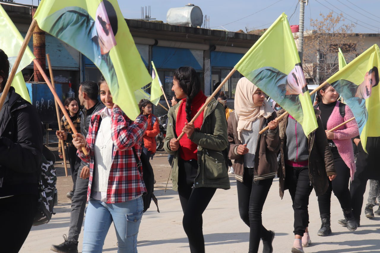 KOABANÊ- Kobanê- Yekitiya Jinên Ciwan öncülüğünde Önder Apo’nun 25 yılı aşkındır devam eden esaretine karşı Kobanê şehrinin Kenei ilçesinde yürüyüş düzenlendi. Yüzlerce genç kadının ve gençlerin katıldığı yürüyüş, mitingle başlayarak, basın açıklaması ile sona erdi. Yürüyüş boyunca Önder Apo’nun özgürlüğünü amaçlayan sloganlar atıldı. Yürüyüşte Önder Apo’nun fotoğraflarının olduğu filemelar ve üzerinde “Tekbirina Komploya 15’ê Şibatê Serxistina Jiyana Azad e” yazılan pankart taşındı.