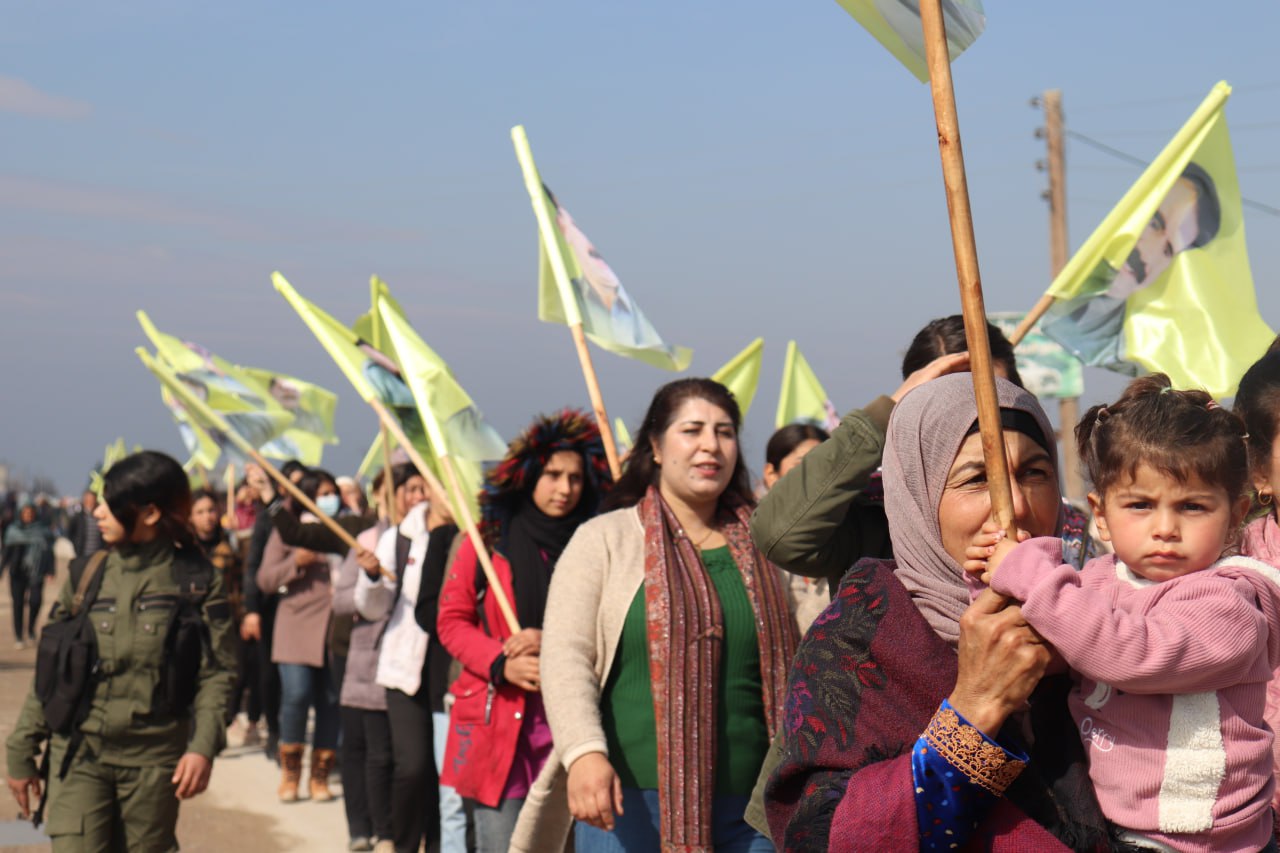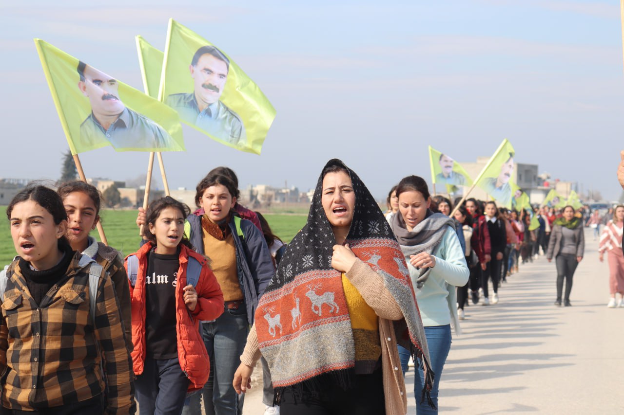 Neda Şahin açıklamasında şu hususlara değindi: “Gerçekleştirdiğimiz yürüyüş 15 Şubat komplosuna karşı yapılmıştır. Amacımız Önder Apo’nun fikir ve felsefesini dışarda yayılmaması için sessiz kalan, Kürt halkını yok etmek isteye ulus devletlere karşı genç kadınlar olarak ve Kongra Star üyeleri olarak sesimizi yükseltmek ve buna karşı çıkmaktır. Bizler Önder Apo’nun izindeyiz. Gerillalarımızın izinde olacağız. Her ne kadar üzerimize de gelseler bizler her zaman Önder Apo’suz yaşamın olmayacağını haykıracağız.”