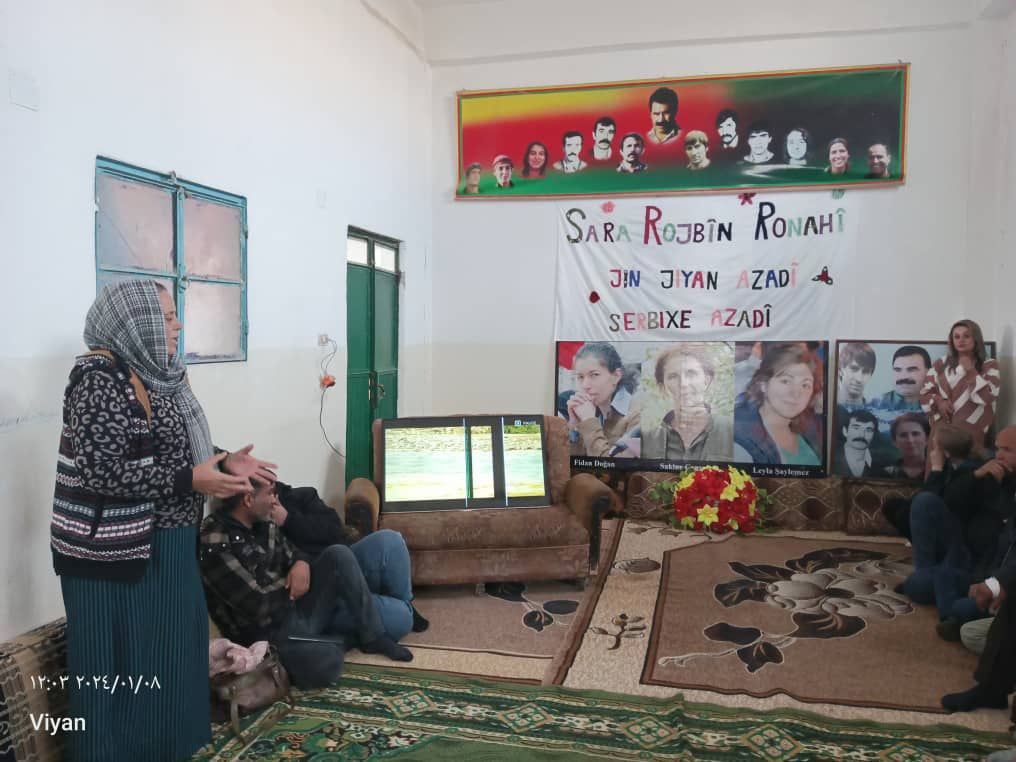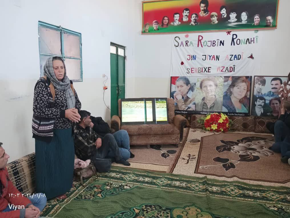 Ayrıca Koban’êye bağlı Serana ilçesi Birêmêr köyünde, Paris katliamında şehit anma için genç kadınlara bir toplantı düzenlendi. Saygı duruşuyla başlayan toplantıda Yekitiya Jinên Ciwan üyesi Nuseng Ali şehit Sara, şehit Rojbin ve şehit Ronahi’nin hayatından ve yaşam mücadelesinden bahsetti. İzlenen sinevizyonun ardınsan anma, “Şehîd Namirin” sloganlarıyla son buldu.