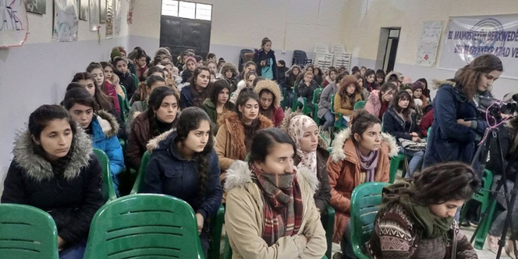 ŞEHBA – Yekitiya Jinên Ciwan‘ın eğitim çalışmaları devam ediyor. Kuzey ve Doğu Surîye’de genç kadınlar, ataerkil zihniyete ve kapitalizme karşı farkındalık yaratmak için eylem ve etkinliklerine devam ediyor.