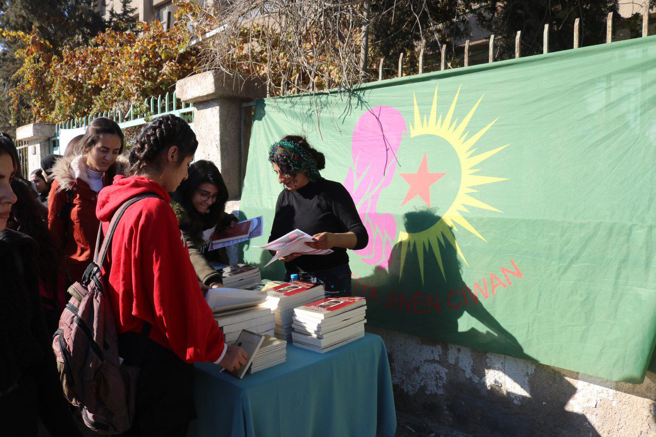 Qamişlo kentinde Yekîtiya Jinên Ciwan Önder Apo üzerinde uygulanan tecride dikkat çekmek için ‘’Gençlik Önder Apo’nun Fedaisidir’’şiarıla stant açtı ve Önder Apo’nun kitaplarını dağıttı.
