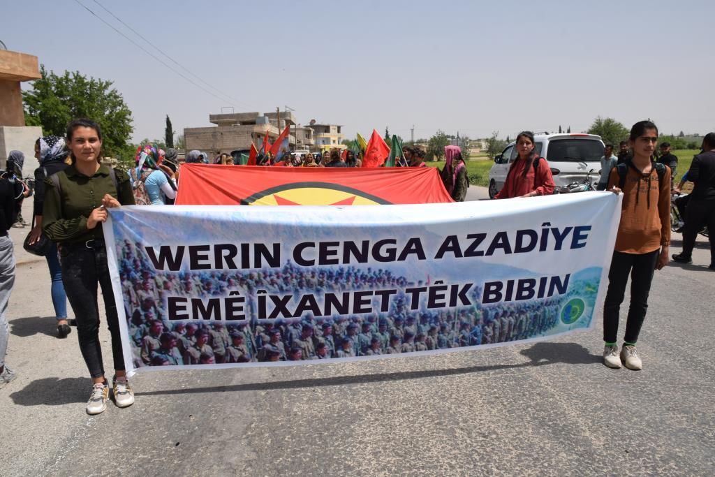 KOBANÊ – Kobanê Kantonu’na bağlı Qena ilçesinde işgalci Türk devletinin Kürdistan dağlarında dönük saldırılarını ve KDP’nin işbirliğini kınamak amacıyla gerçekleştirilen protesto yürüyüşü Elîcax köyü dört yolunda son buldu.