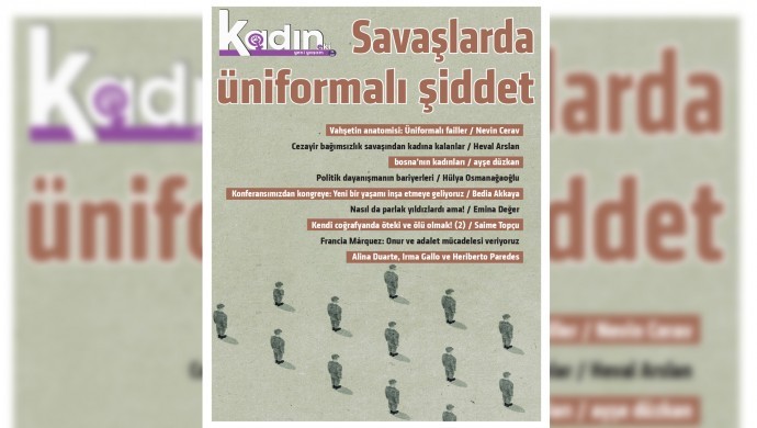 HABER MERKEZİ – Yeni Yaşam Kadın Eki’nin 39’uncu sayısı “Savaşlarda üniformalı şiddet” kapağı ile yayınlandı. Yeni sayıda savaş politikası olarak üniformalı şiddete ve cezasızlığa odaklanılıyor. 39’uncu sayıda Nevin Cerav, Kürt kentlerinde kadınlara yönelik işgalci asker, polis ve işbirlikçi korucuların tecavüzlerini ve cezasızlık politikalarını örnekler ile aktarırken, İç İşleri Bakanı Süleyman Soylu’nun “Bir yılda 5 bin korucuyu uzman çavuşluğa geçireceğiz” açıklamalarını HDP Milletvekili Nuran İmir ve insan hakları savunucusu Eren Keskin’e değerlendirtiyor. Ayşe Düzkan, Bosna savaşını ve savaş sırasında kurulan tecavüz kamplarını 1998 yılında Bosna’ya yaptığı ziyaret deneyimden aktarırken, Heval Arslan Cezayir’in bağımsızlık savaşı mücadelesinde büyük bedeller ödeyen ve savaşta mücadele eden kadınların bağımsızlığın ardından yeniden toplumsal cinsiyet rollerine itilmesine dikkat çekiyor.