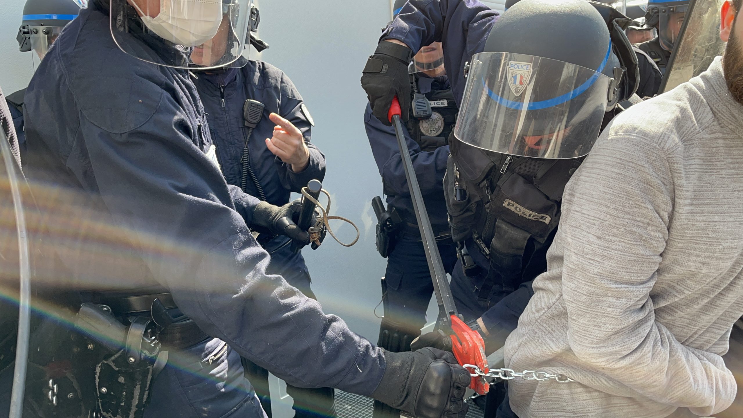 Gençlere müdahelede bulunan faşist Fransız polisi gençlere joplarla ve demir kesme makasları ile müdahale de bulundu. Buna karşın Kürt gençleri “Bijî Serok APO” sloganı ile yanıt verdi.