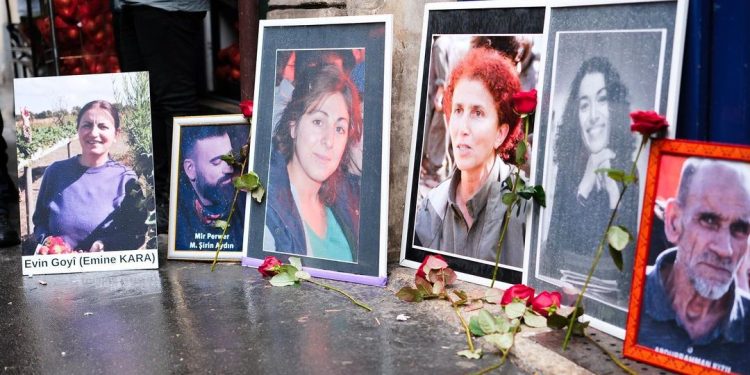 BEHDÎNAN- Fransa’nın başkenti Paris’te bulunan Kurdistan Enformasyon Bürosu’nda 9 Ocak 2013’te katledilen PKK kurucularından Sakine Cansız (Sara), KNK Diplomasi Komitesi Üyesi Fidan Doğan (Rojbîn) ve Gençlik Hareketi Üyesi Leyla Şaylemez’i (Ronahî) 11’inci şehadet yıl dönümleri dolayısıyla andı; Türk devletinden bu kanlı katliamlarının hesabını soracaklarını belirtti.