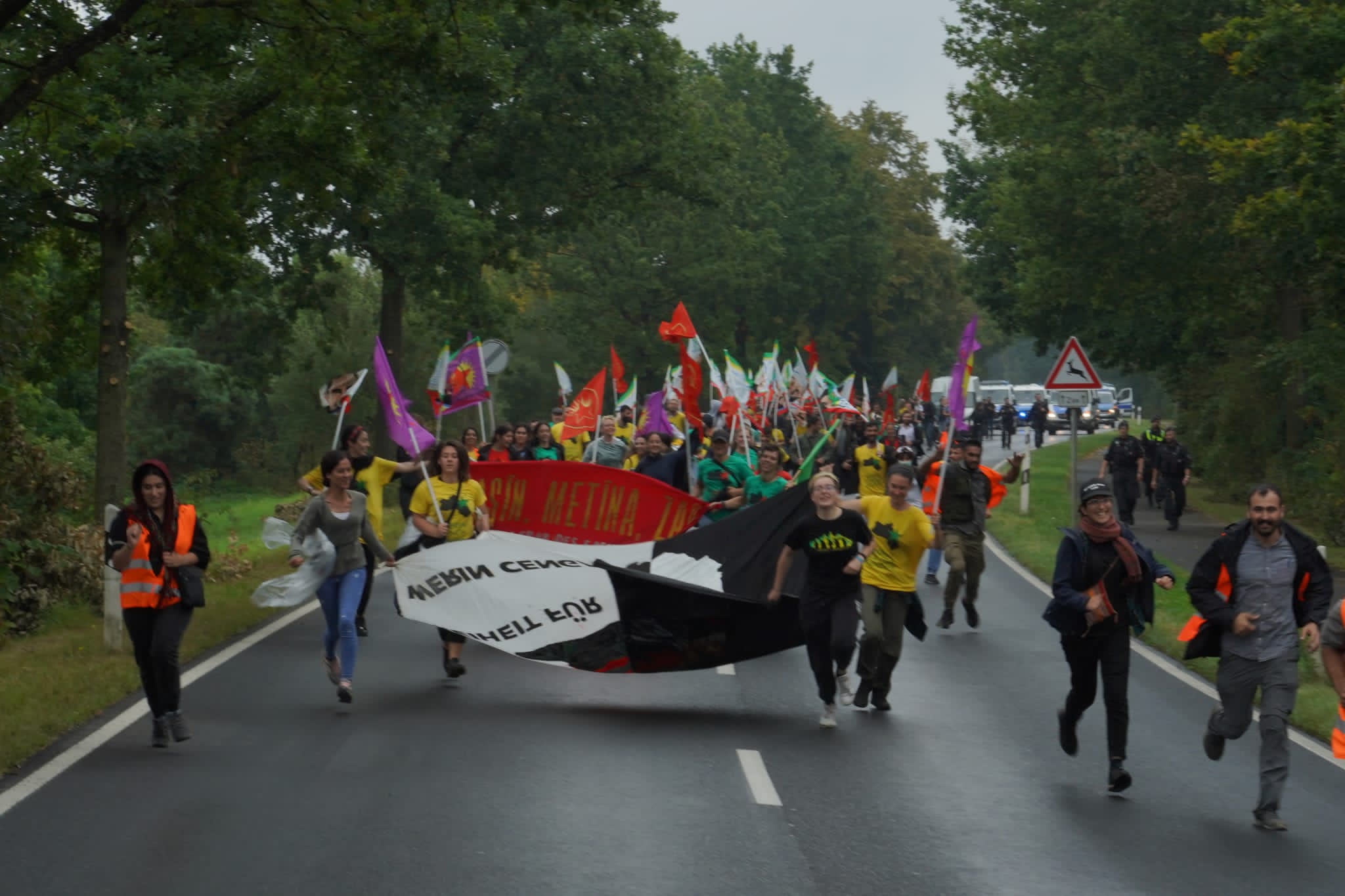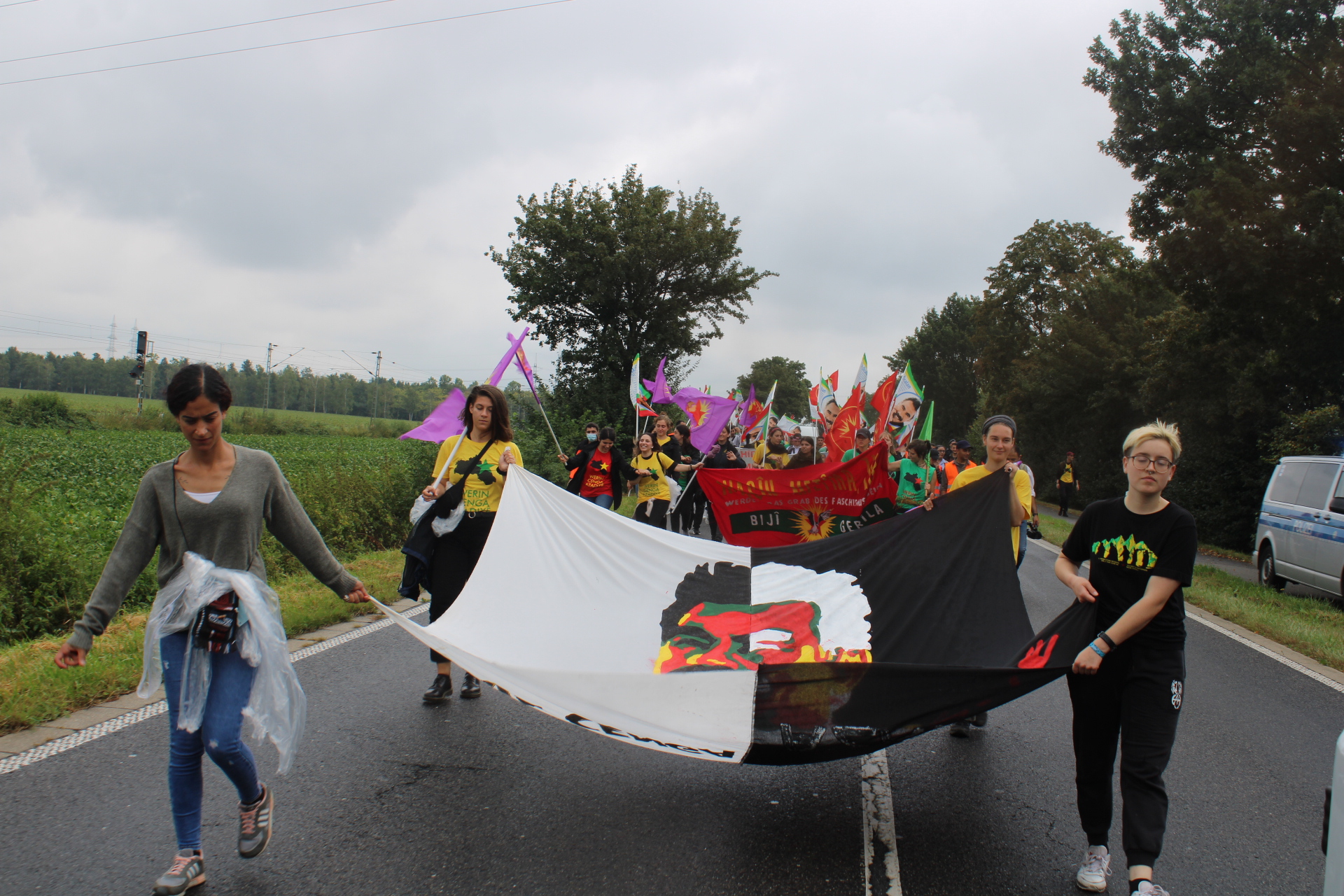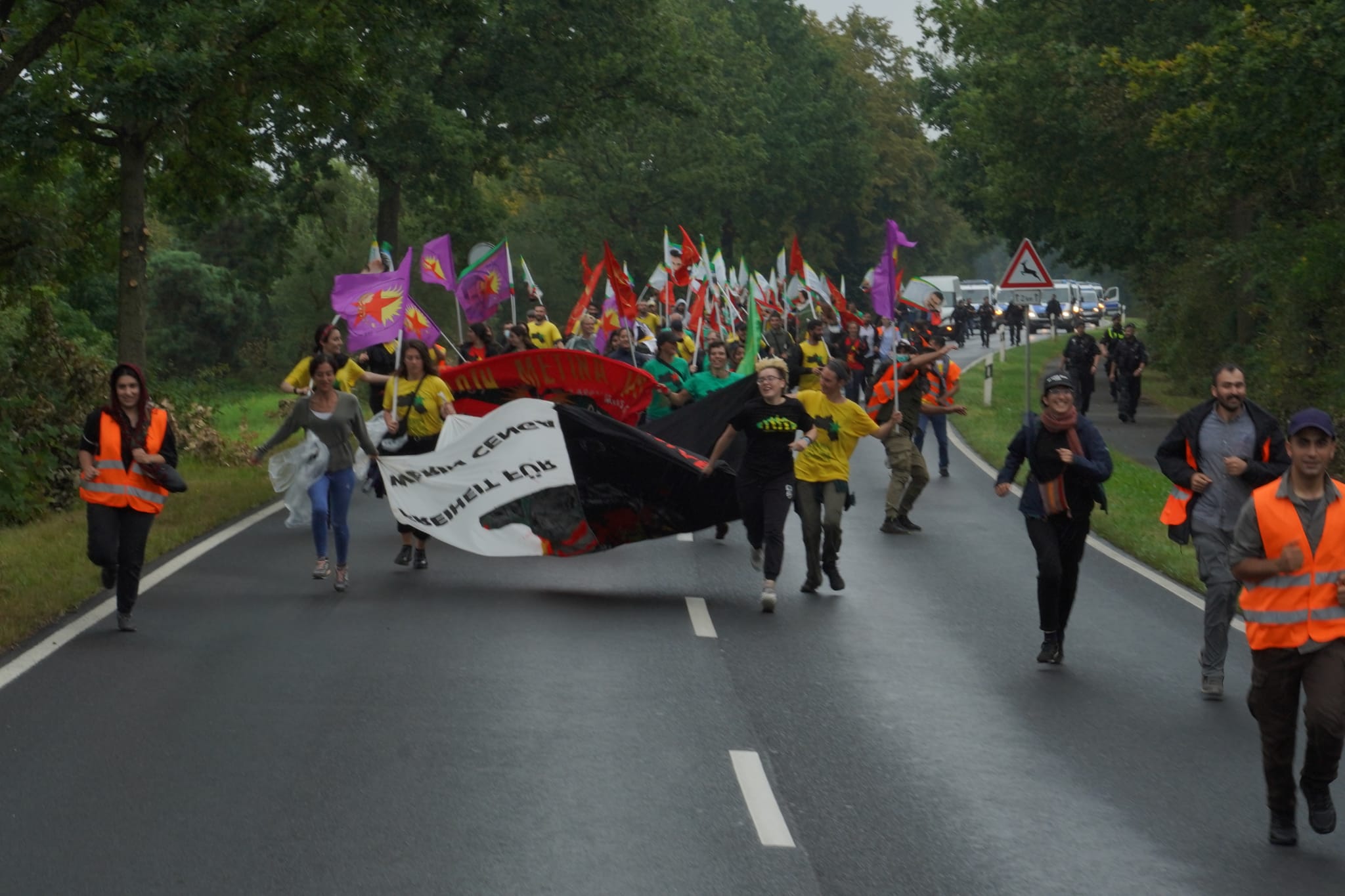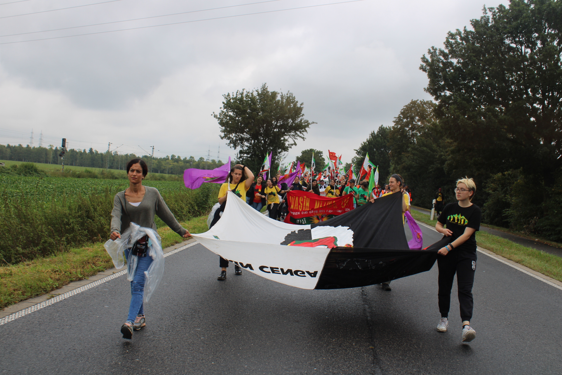Köln’de 11 Eylül sabahı start alan Uzun Yürüyüş’ün 5’inci gününde gençler, Neuss’ta bulunan Gençlik parkında sabahın erken saatlerinde toplanmaya başladı. Saygı duruşu ve marşların okunması sonrası kortejlerine geçen gençler, “Cenga Azadiyê Geş Bike, “Avaşîn, Zap, Metîna – Bijî Gerîla”, “Freedom for Ocalan” pankart ve dövizleri eşliğinde Mönchengladbach’a doğru yürüyüşe geçti.