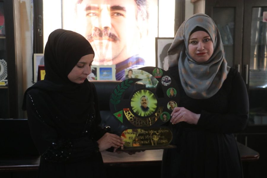 Ziyaret sırasında Genç Kadınlar Birliği’ne, kadınların ve halkların özgürlüğünü korumak için şehit düşen kadın şehitlerin fotoğraflarının ve Önder Apo’nun fotoğrafının yer aldığı ve üzerinde Kürtçe ” Önder Apo’nun özgürlüğünün gerçekleşmesi umuduyla 8 Mart’ınız kutlu olsun” yazılı kutlama hediyesi takdim edildi.