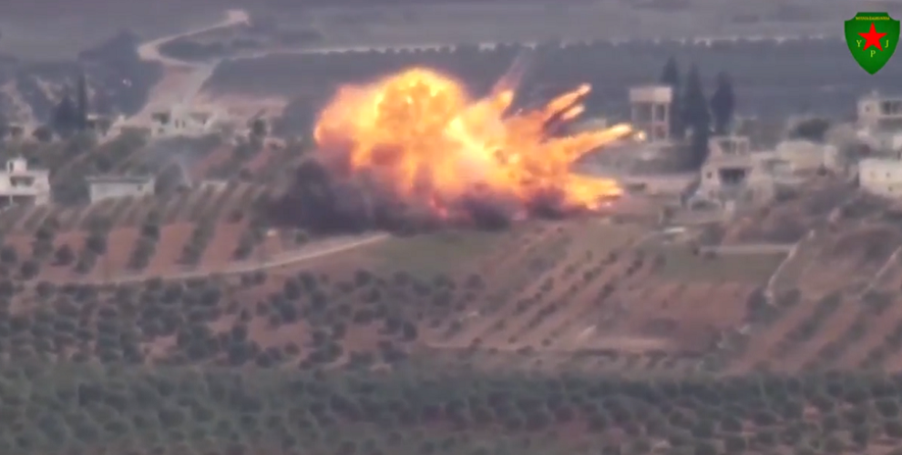 YPJ Basın Merkezi, Efrin’in Bilbilê ilçesine bağlı Heftaro köyünde işgal güçlerine ait bir tankın imha edildiği anlara ait görüntüleri yayınladı.