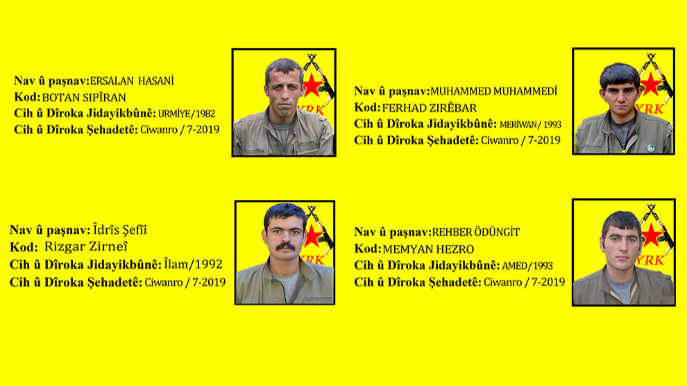 YRK, operasyon sonucunda Ersalan Hasanî (Botan Sipîran), Muhammed Muhammedî (Ferha Zîrebar), Rehber Odungît (Memyan Hezro) ve Îdrîs Şeffî (Rizgar Zerneî) adlı 4 gerillanın kahramanca direnecek şehit olduklarını belirtti.