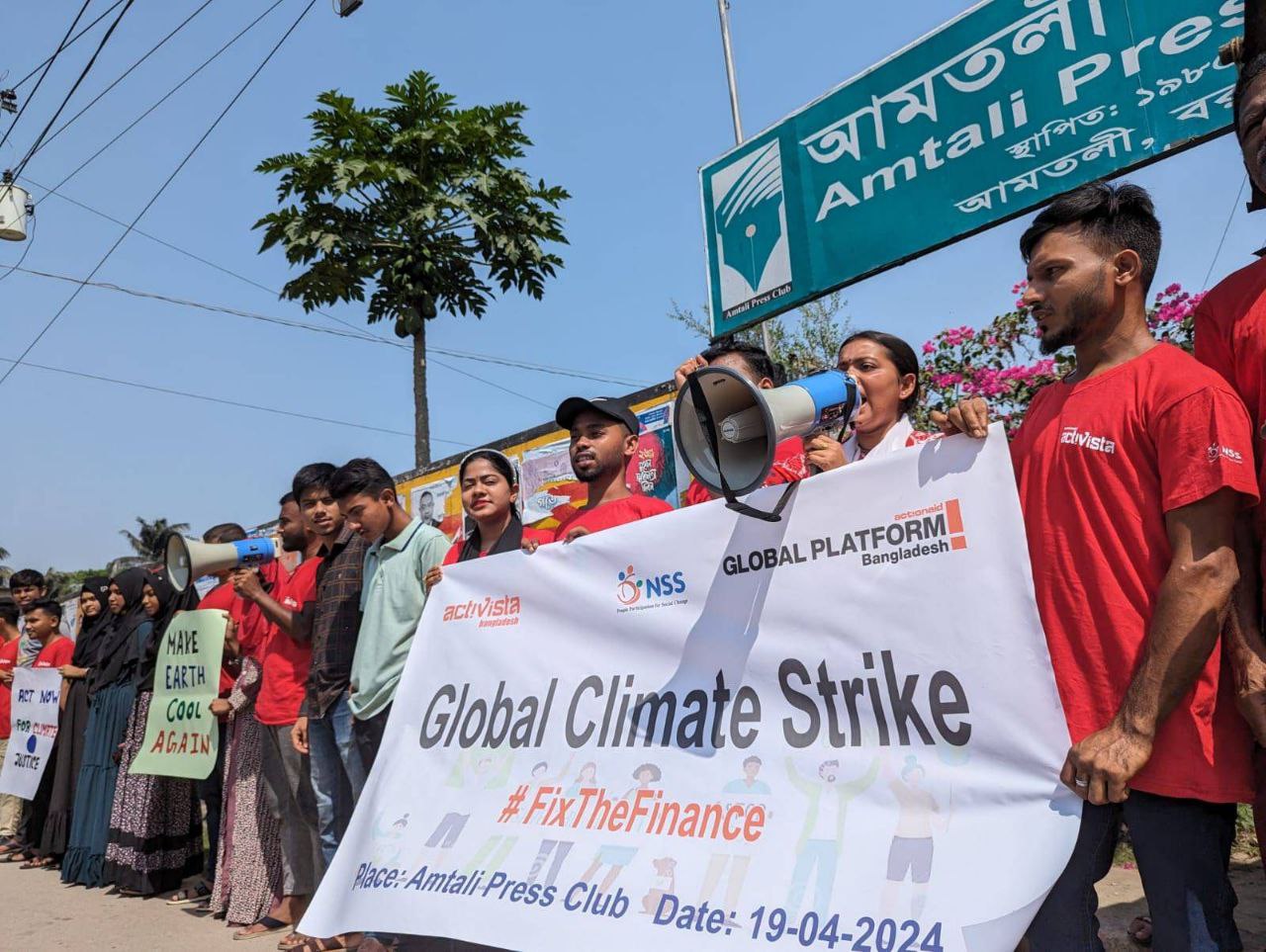 Bangladeş’te de gençler de birçok şehirde küresel iklim grevine katıldı. Gençler,  fosil yakıtlara yapılan yatırımların durdurulması ve yenilenebilir enerjinin yaygınlaştırılması çağrısında bulundular. Bangladeş en düşük CO² emisyonuna sahip ülkelerden biridir. Aynı zamanda milyonlarca insan artan sel ve fırtınalardan kaçıyor.