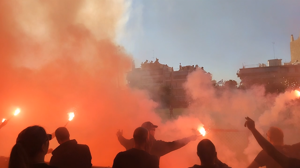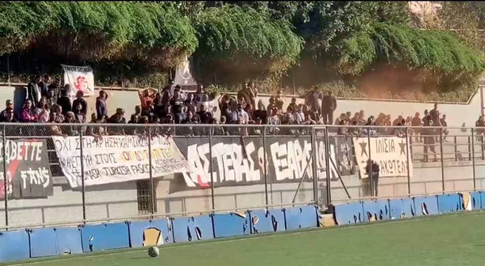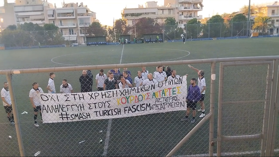 ATİNA – Yunanistan’ın başkenti Atina‘da Kürt ve enternasyonalist gençler öncülüğünde, gerçekleşen futbol maçında futbolcular ve seyirciler faşist Türk devletinin insanlık dışı saldırılarına dikkat çekti.