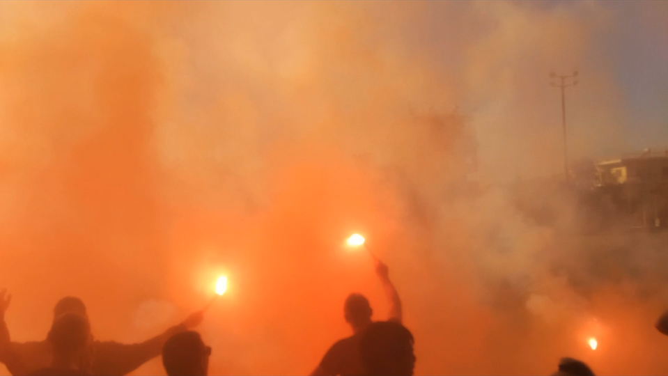 Kürt halkıyla dayanışmayı göstermek için yeşil, kırmızı ve sarı renklerde sis bombaları da yakıldı.