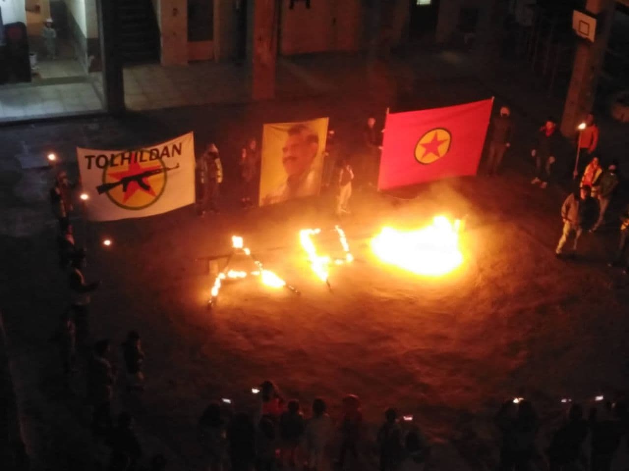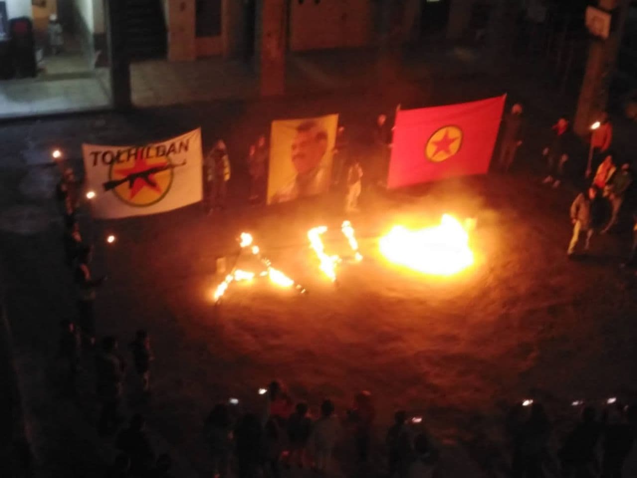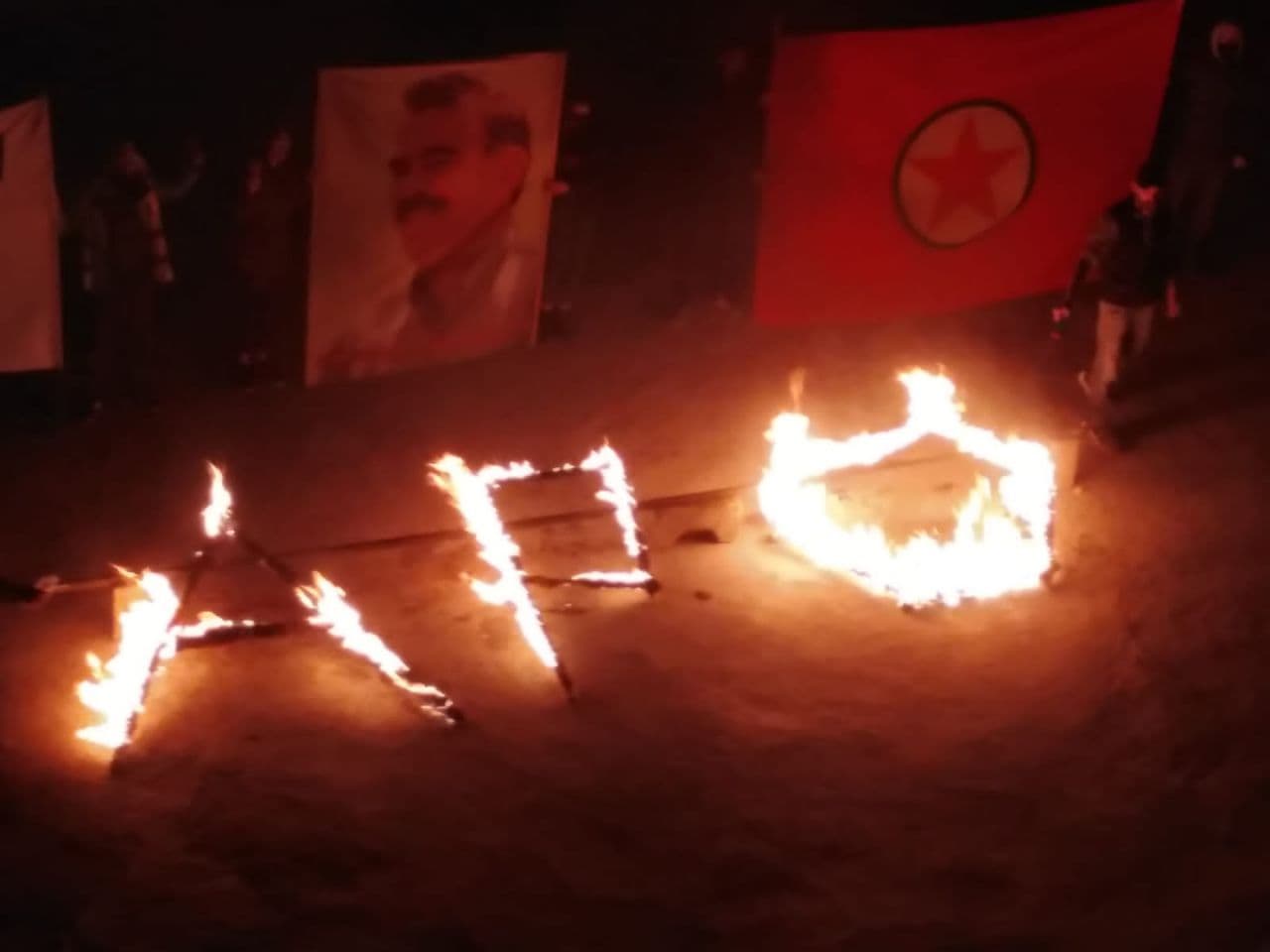 Halklar Önderi Abdullah Öcalan ve PKK posterleri açan gençler ateş ile “Apo” yazdı. Gençler “Bijî Berxwedana Zindanan”, “Bê Serok Jîyan Nabe”, “Selam, Selam İmralı’ya Bin Selam”, “Bi Can Bi Xwîn Em Ji Terene Ey Serok” sloganları ile İmralı’da uygulanan tecrite dikkat çekti.