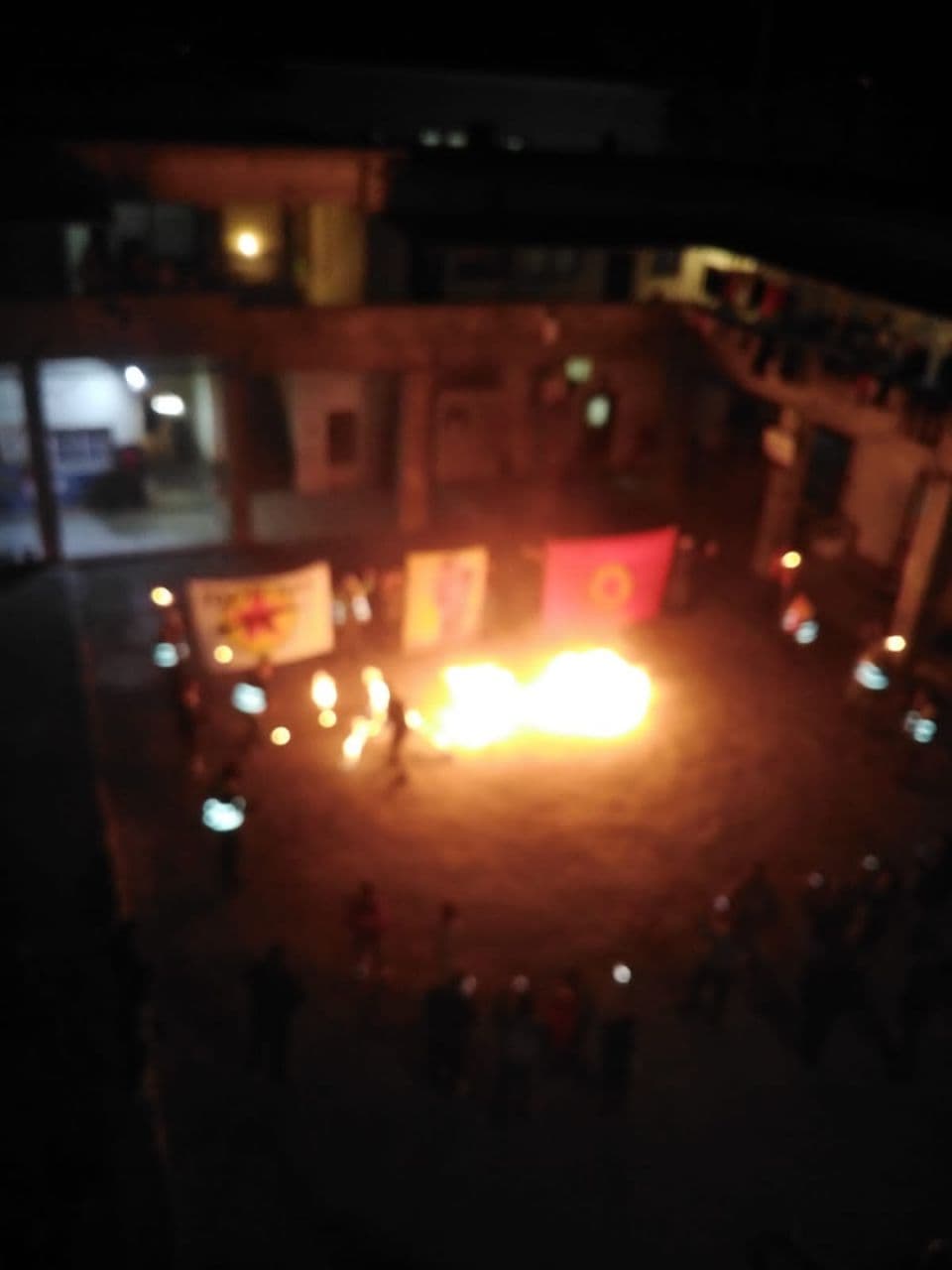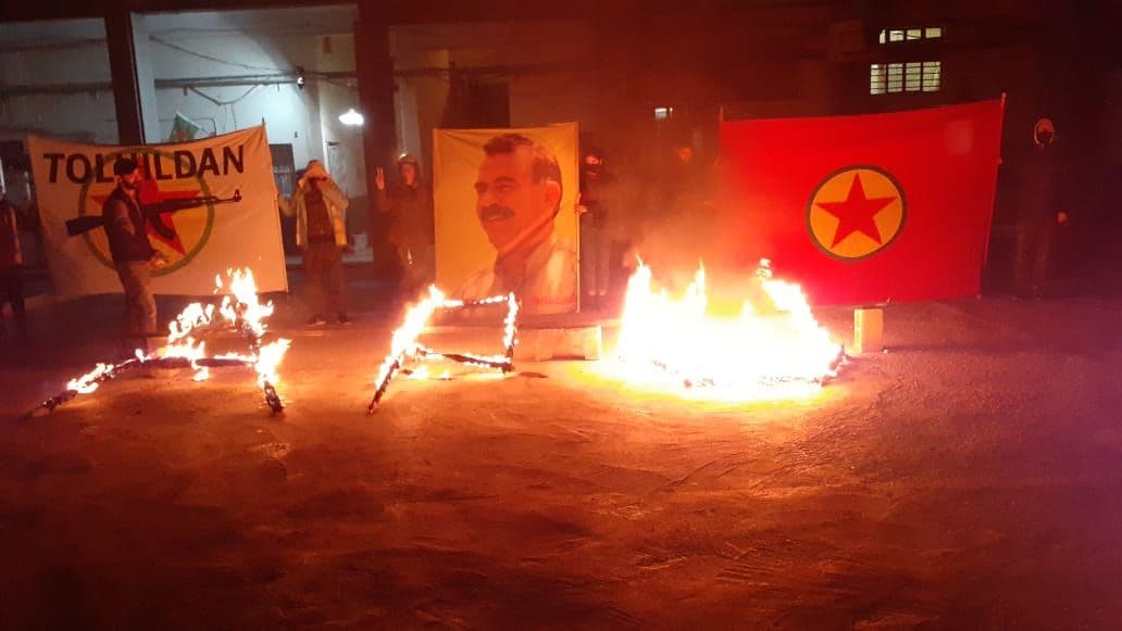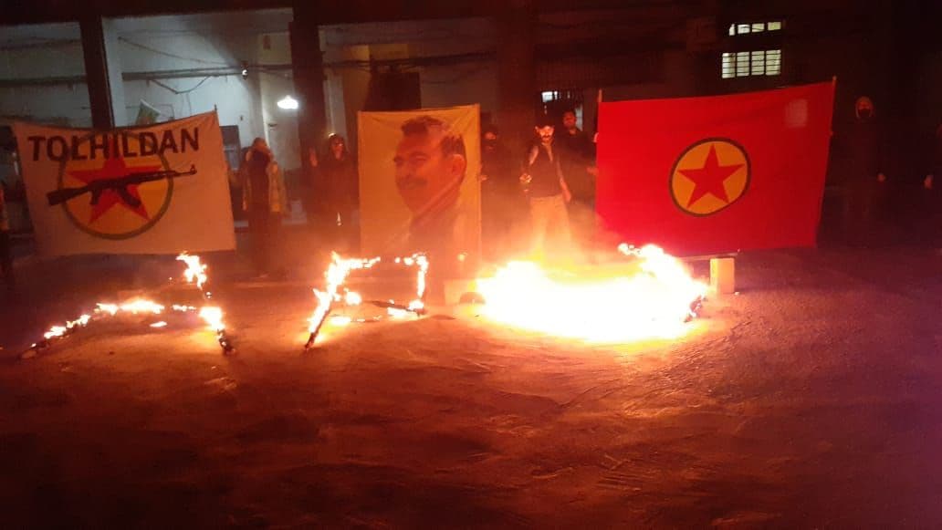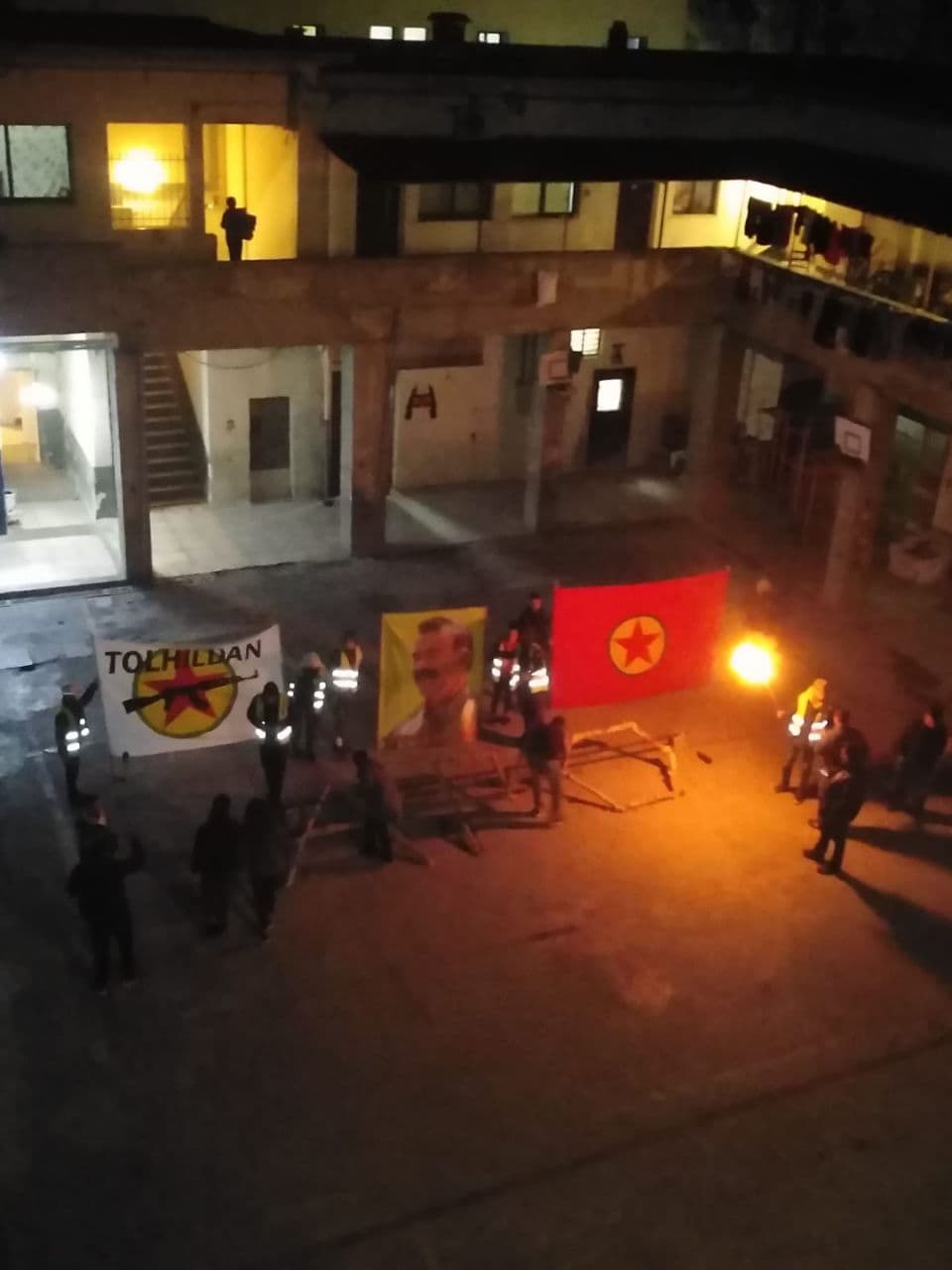 Halklar Önderi Abdullah Öcalan ve PKK posterleri açan gençler ateş ile “Apo” yazdı. Gençler “Bijî Berxwedana Zindanan”, “Bê Serok Jîyan Nabe”, “Selam, Selam İmralı’ya Bin Selam”, “Bi Can Bi Xwîn Em Ji Terene Ey Serok” sloganları ile İmralı’da uygulanan tecrite dikkat çekti.
