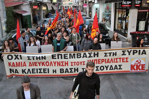 Yunanistan Komünist Partisi ve Yunanistan Komünist Gençliği, “Suriye’ye ABD-NATO-Avrupa Birliği müdahalesine hayır” vurgusuyla Suriye’ye karşı gerçekleştirilen askeri operasyonları protesto etti.
