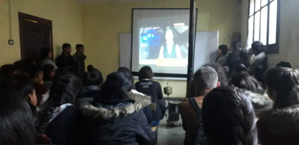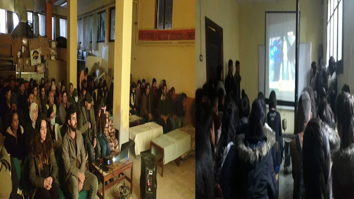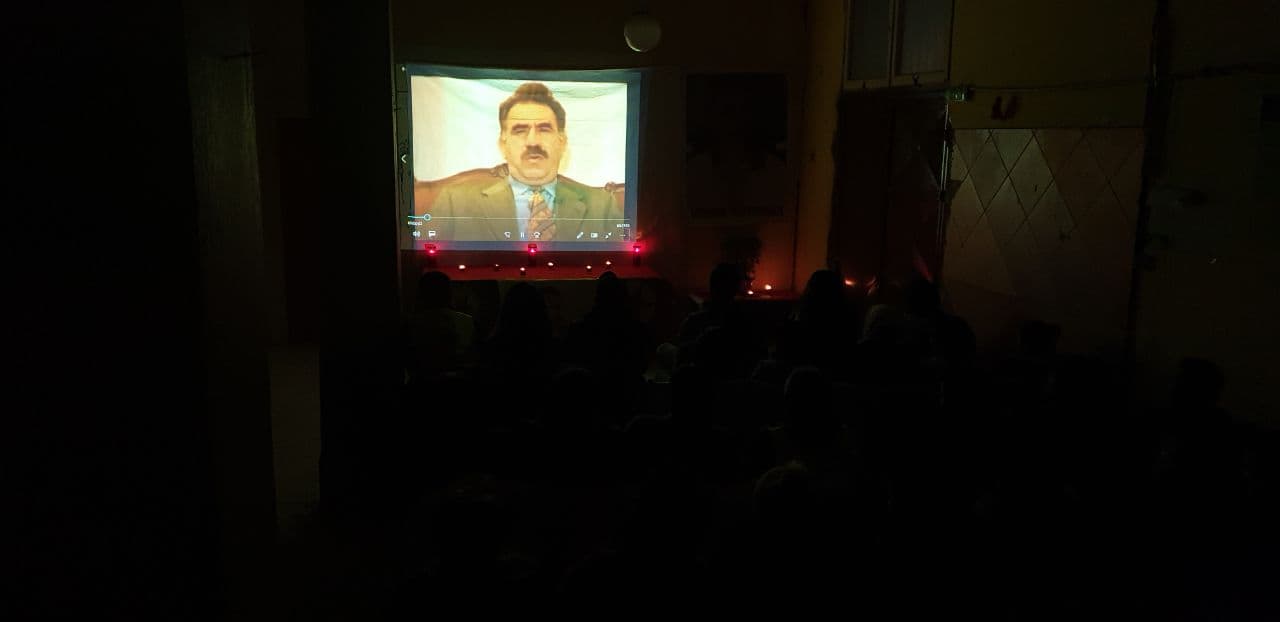 Şehba’nın Til Rifat kentinde Tevgera Xwendekarên Demoqratîk okullarında 15 Şubat uluslararası komployu anlatan sinevizyon izledi.