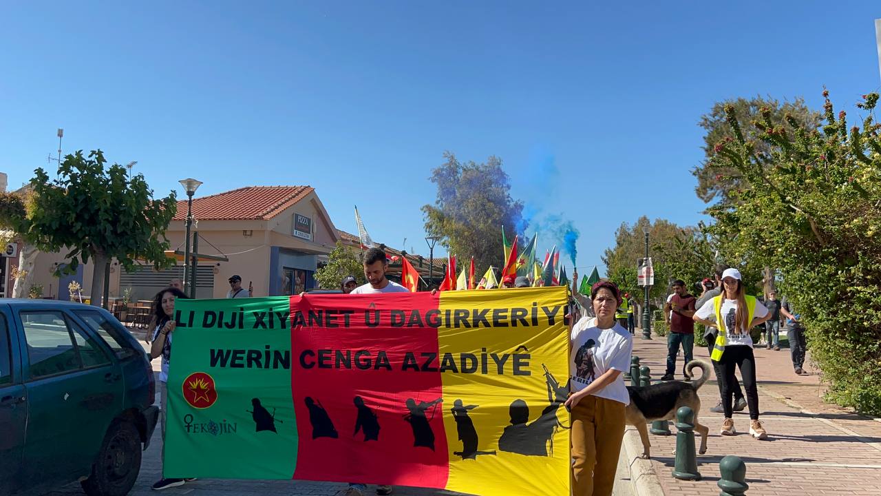 Tevgera Ciwanên Şoreşger (TCŞ) ve Jinên Ciwan ên Têkoşer (TekoJIN) öncülüğünde “İhanete ve İşgale Karşı Werin Cenga Azadiyê” sloganıyla gerçekleştirilen yürüyüş, sabah saat 10.00’da Lavrio Kampı’ndan start aldı.