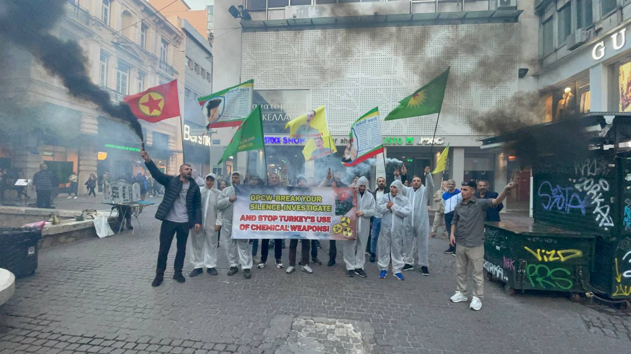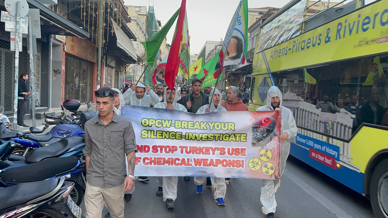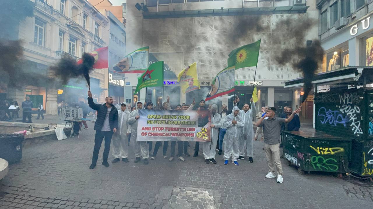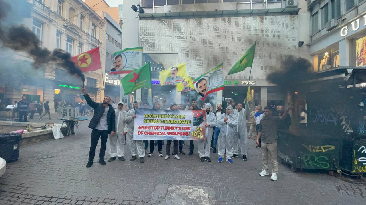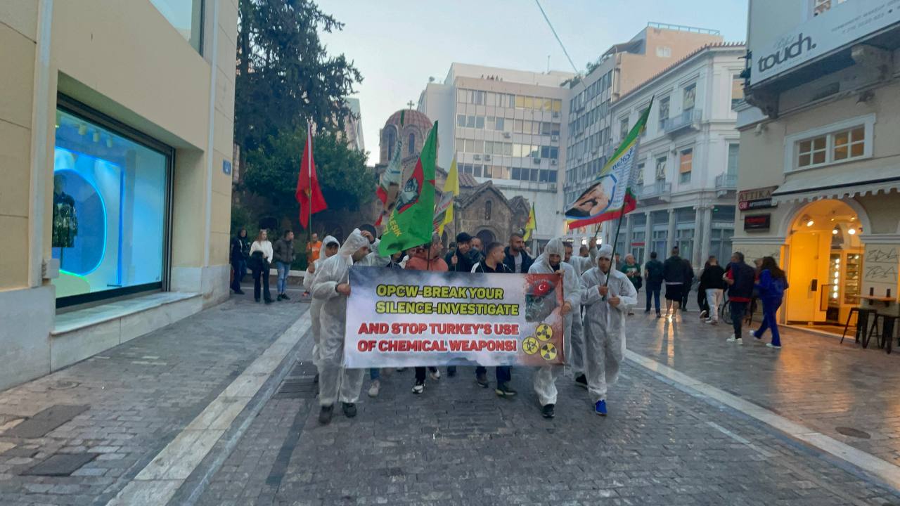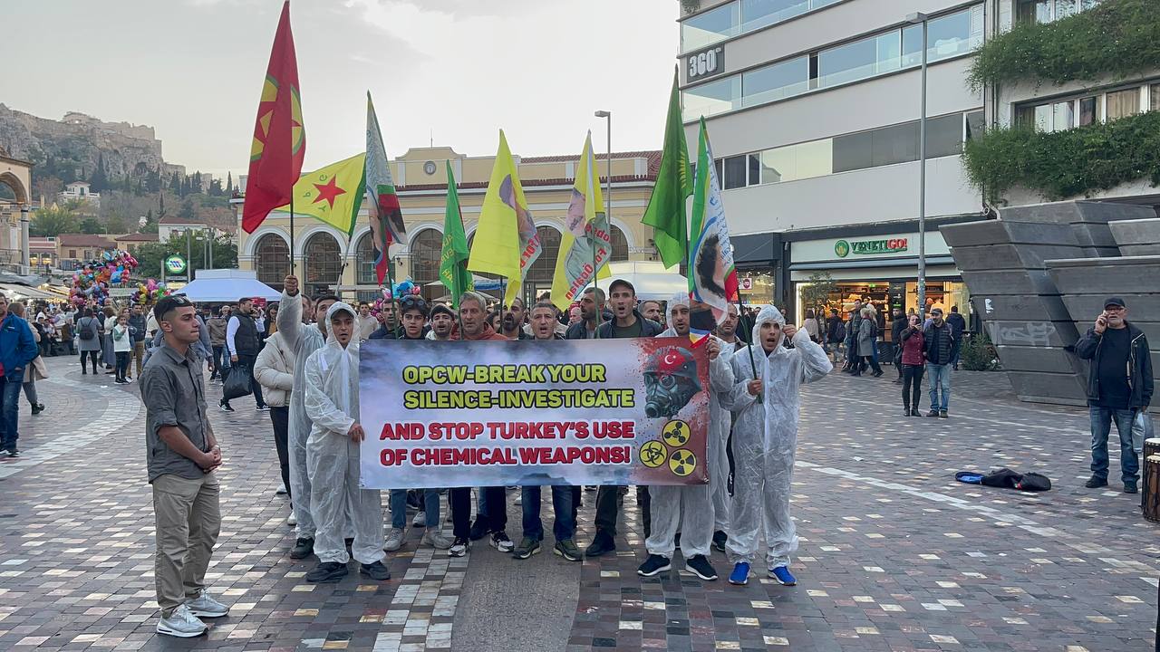 ATİNA – Atina da TCŞ gençliği öncülüğünde kimyasal silah kullanımına karşı bir eylem gerçekleştirildi.