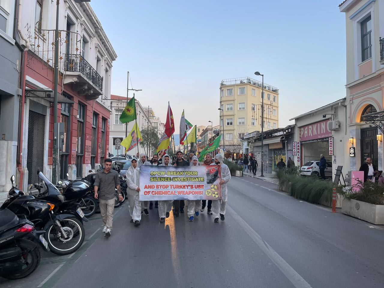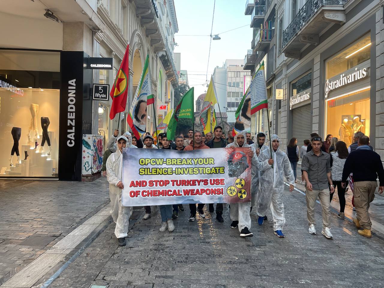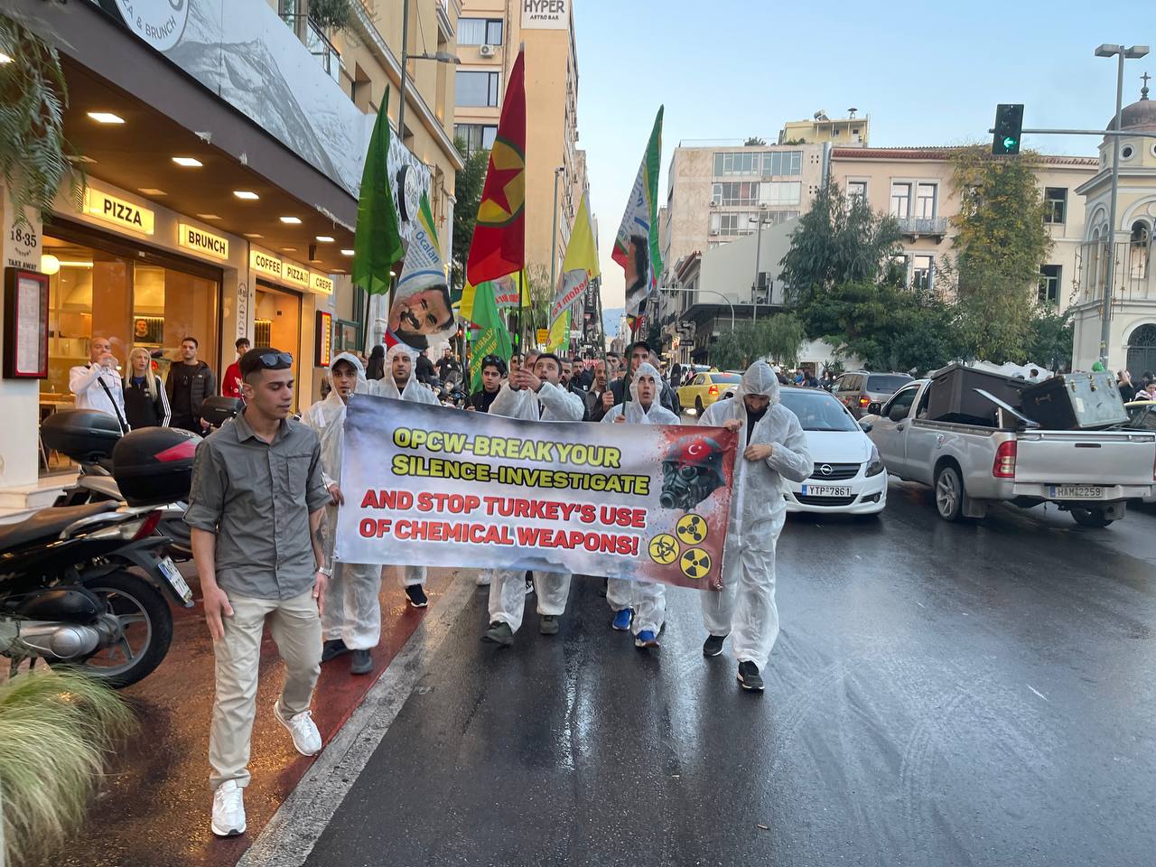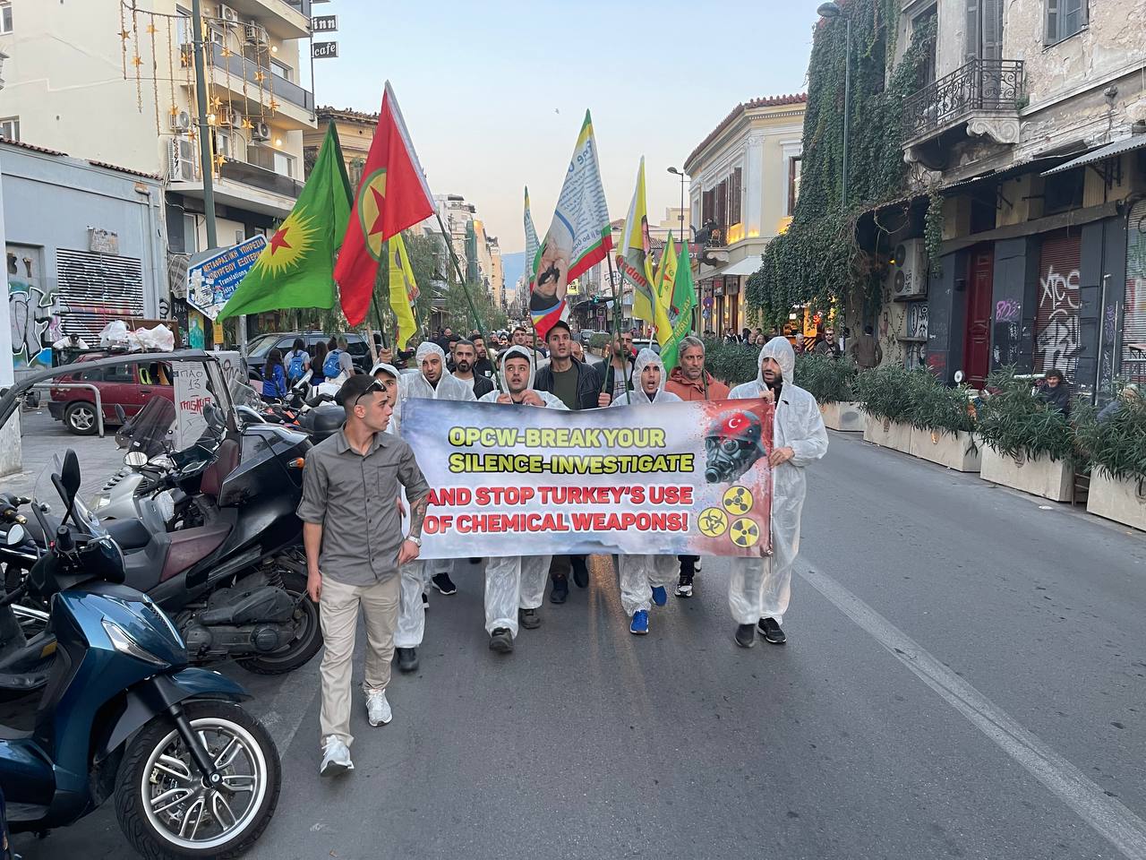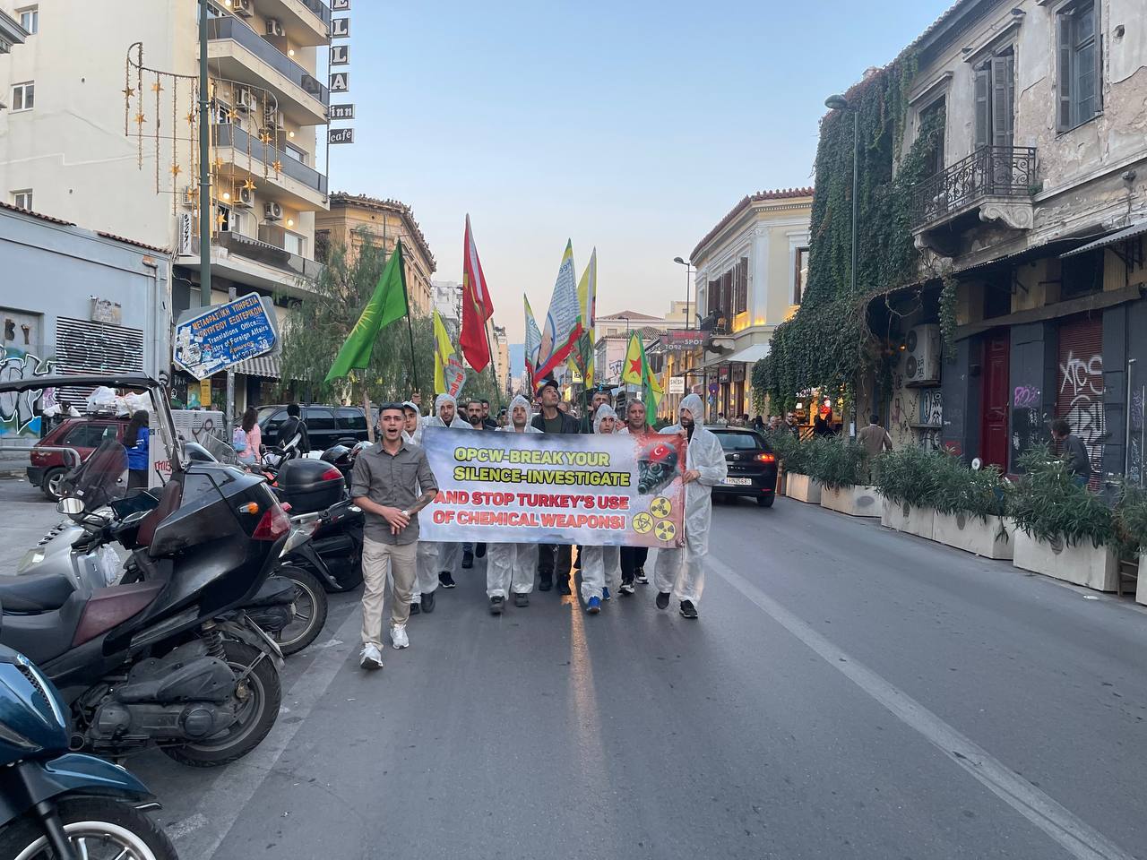 ATİNA – Atina da TCŞ gençliği öncülüğünde kimyasal silah kullanımına karşı bir eylem gerçekleştirildi.