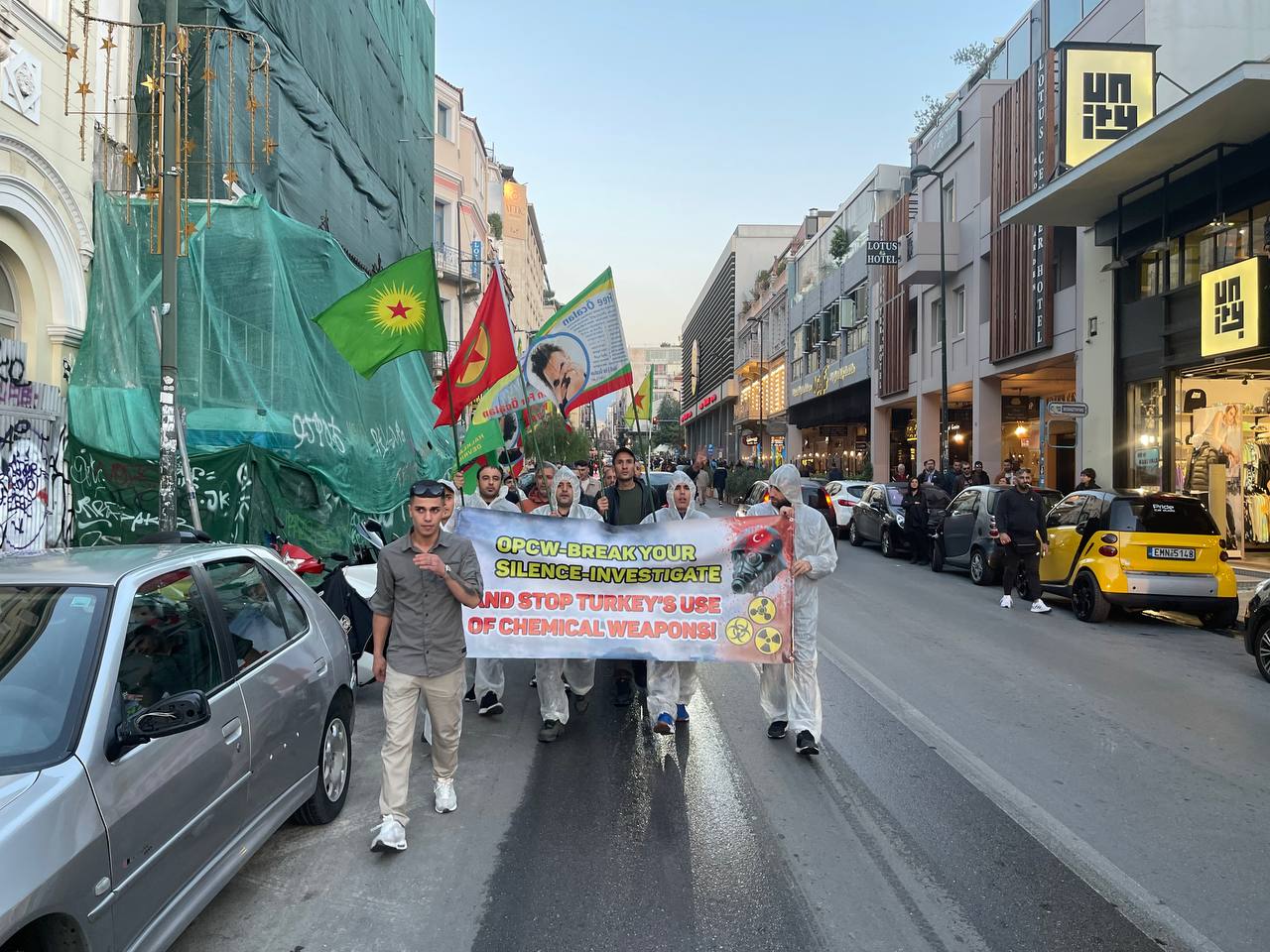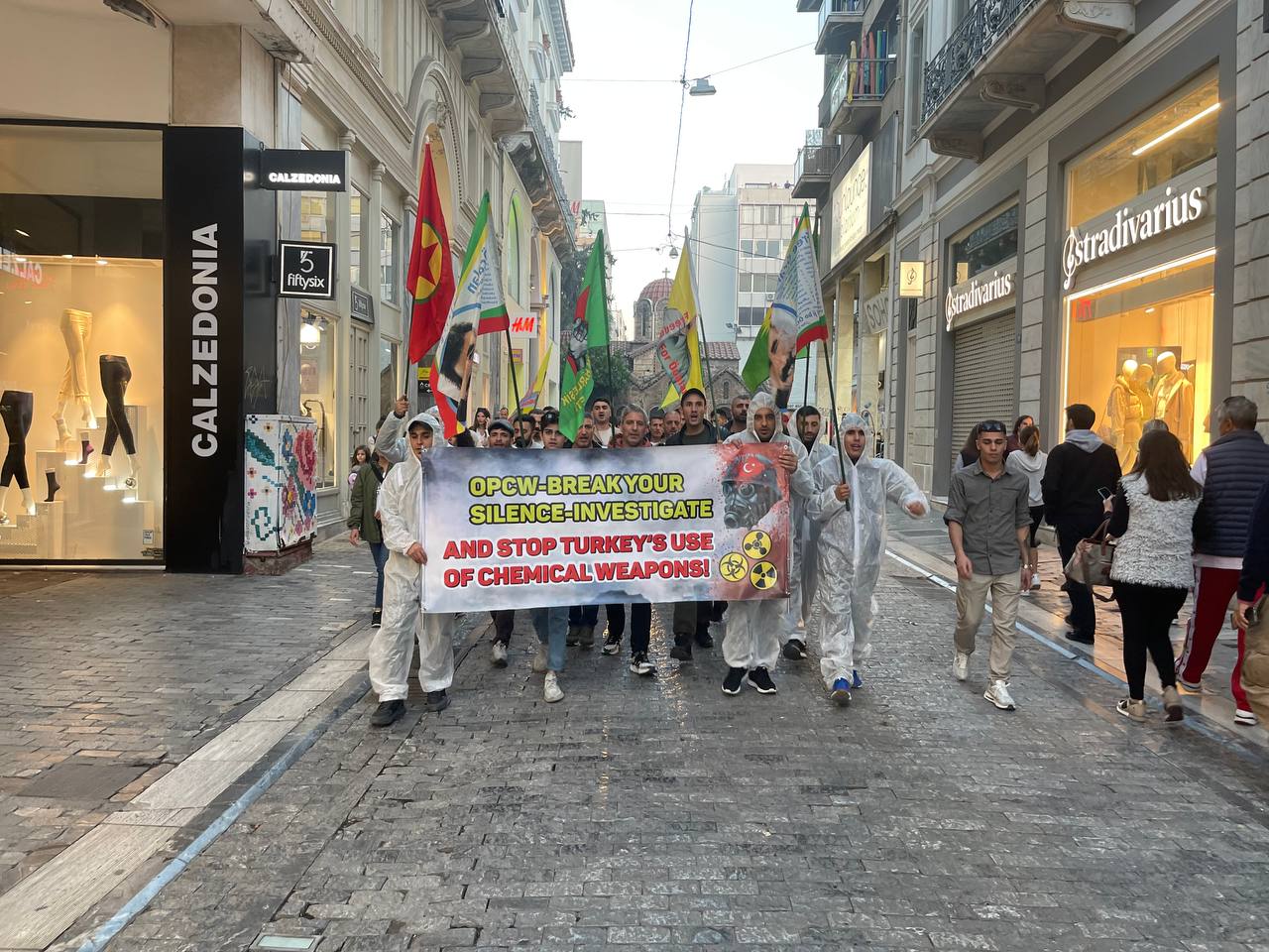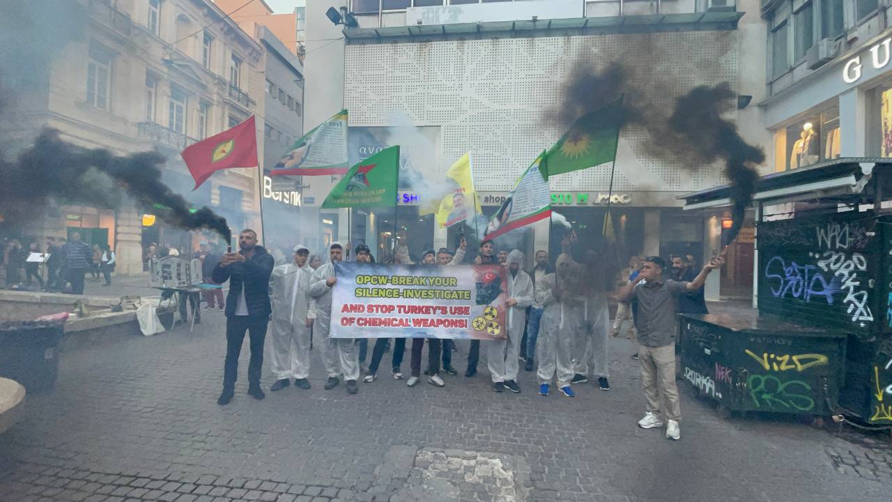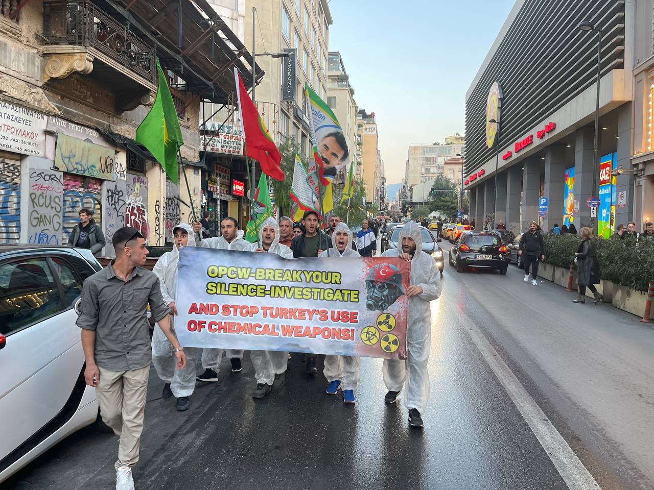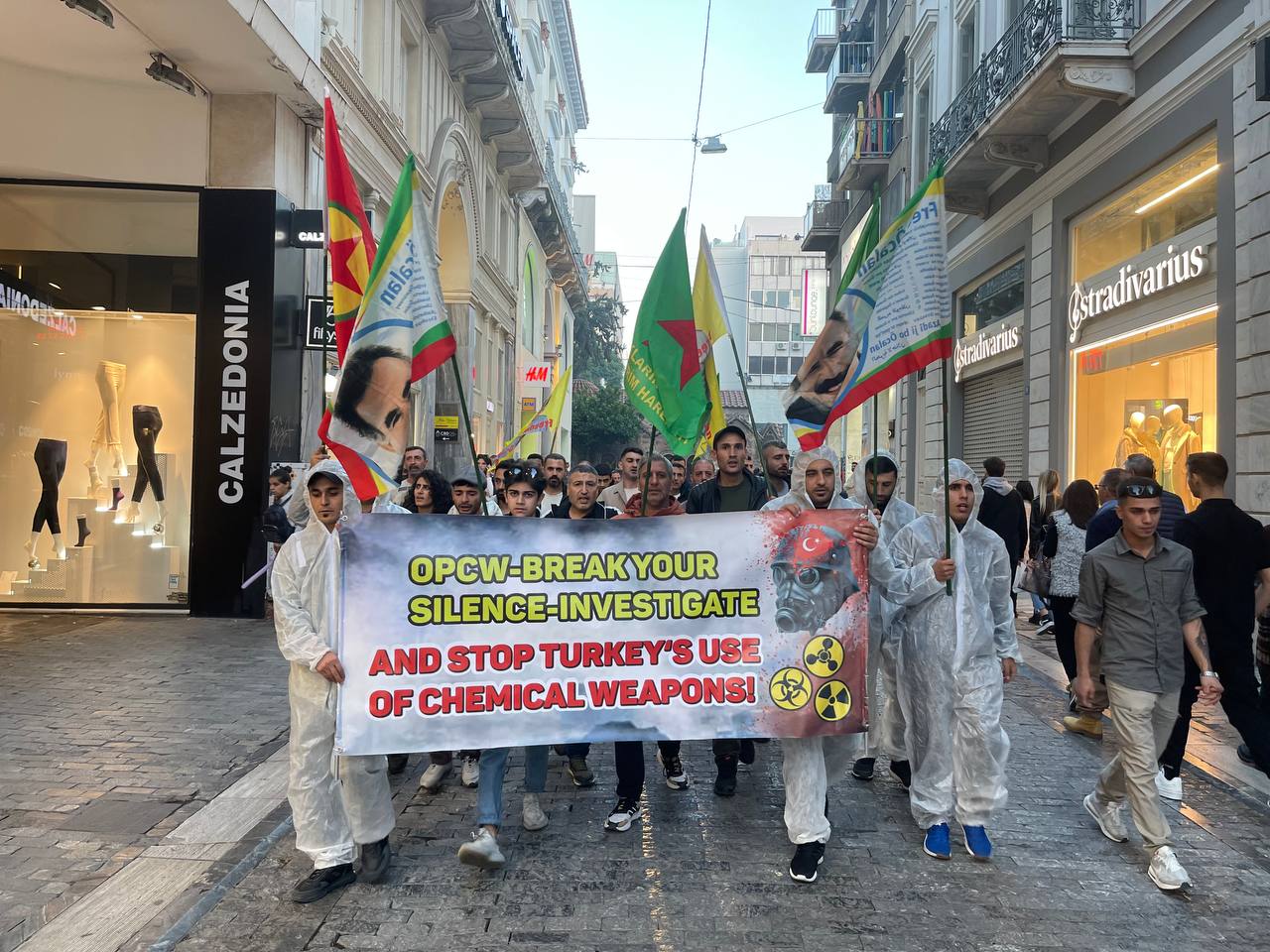 ATİNA – Atina da TCŞ gençliği öncülüğünde kimyasal silah kullanımına karşı bir eylem gerçekleştirildi.