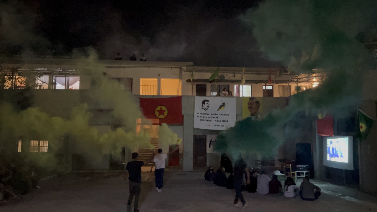 Türk Konsolosluğu’na ulaşan kitle, burada slogan ve marşlarla işgal saldırılarını protesto etti. Daha sonra Çerxa Şoreşê marşı eşliğinde saygı duruşu gerçekleştirildi.