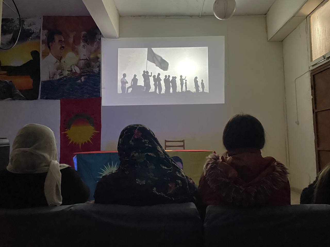 Sinevizyon öncesi tüm Kürdistan şehitleri anısına bir dakikalık saygı duruşundan sonra. Kürt kadınları adına konuşma yapıldı.