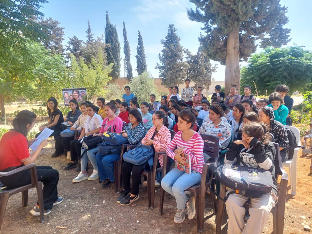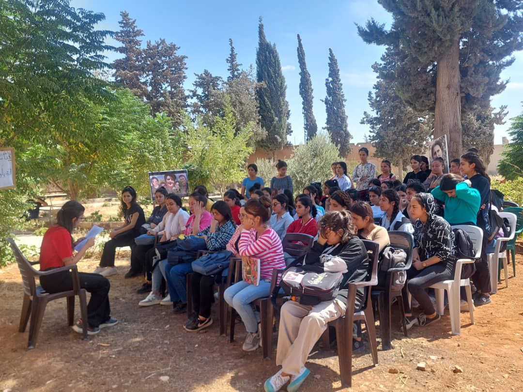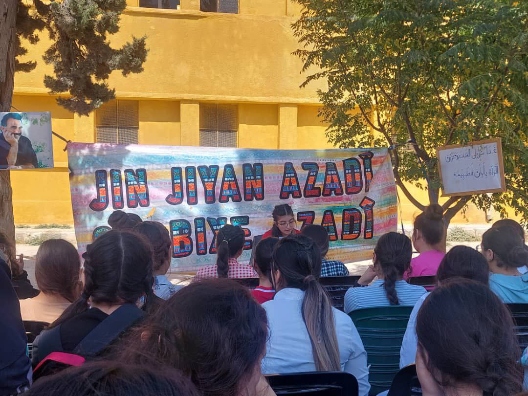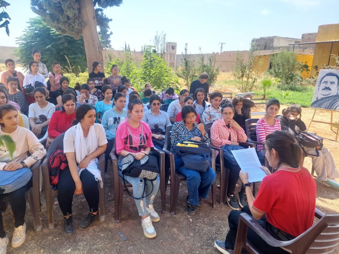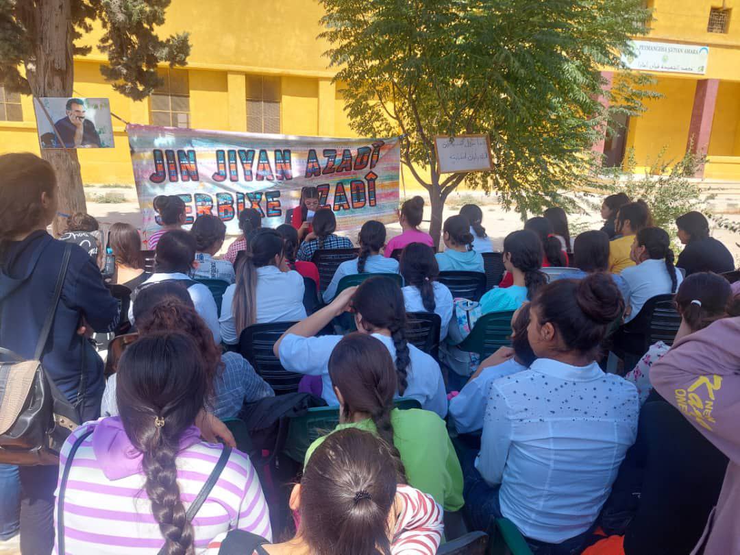 ŞEHBA- Şehba’da yaşayan Yurtsever Genç Kadın Öğrenciler bir araya gelerek Önder APO’nun “Kadın ve Aile” konusuna dair değerlendirmelerini okudu. Jin Jiyan Azadî Serbixe Azadî kampanyası kapsamında bir araya gelen onlarca kadın bir gün boyunca Önder APO’nun toplumda kadının ve aile yapsının durumunu ele aldığı değerlendirmeleri okuyarak ardından tartışmalar yürüttü.