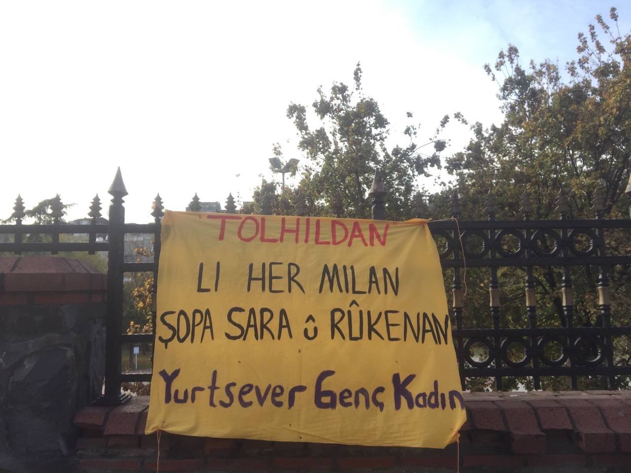 İSTANBUL – Yurtsever Genç Kadın’lar İstanbul’da işgal saldırılarına karşı pankart açtı.