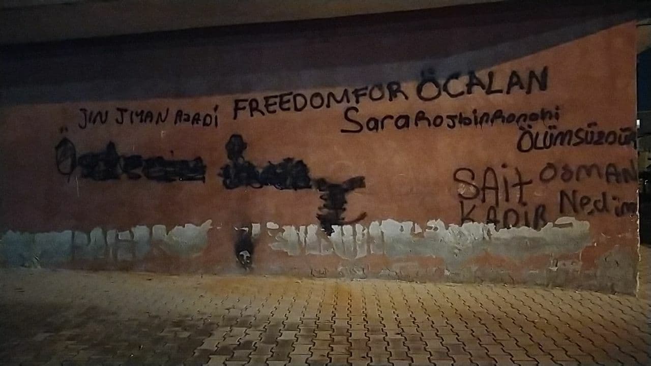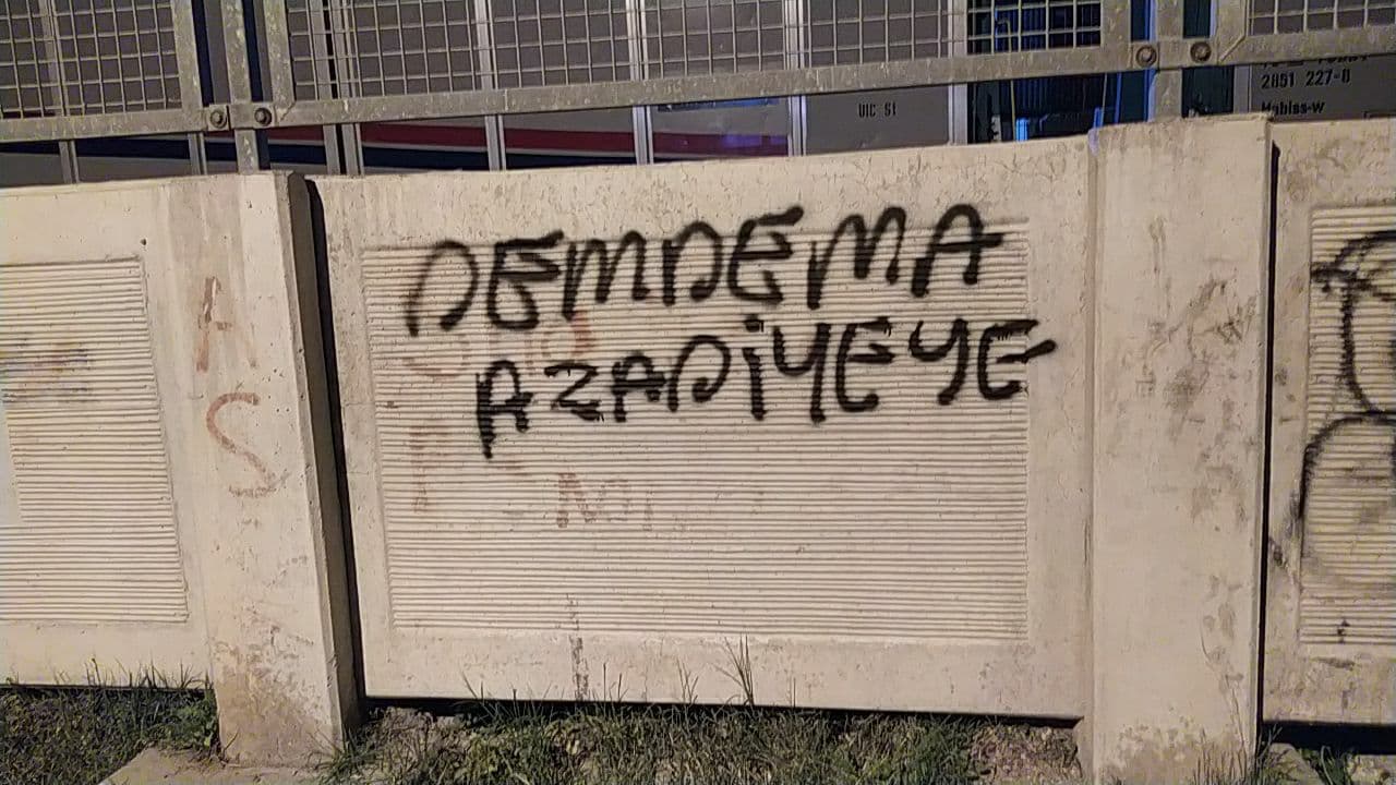Mücadelenin tecriti kırmaktan geçtiğini vurgulayan yurtsever genç kadınlar ” Tecride Son”, Bijî Serok APO”, “Bijî Berxwedana Zindana” yazılamaları yaparak zindan direnişlerini sokaklara taşıdı.