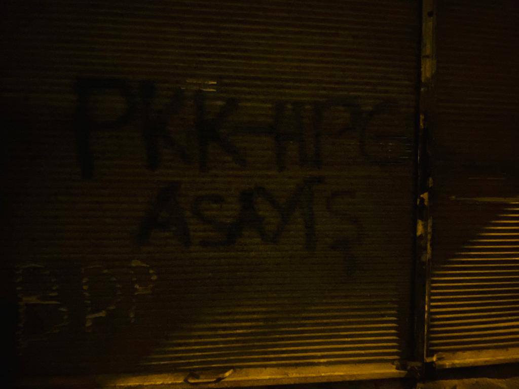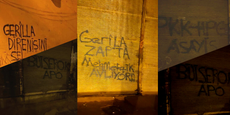 AMED – Amed’in Huzurevleri semtinde, Yurtsever Gençlik yazılama çalışması gerçekleştirdi. İşgalci Türk devleti ve işgalci KDP ortaklığında Medya Savunma Alanlarına yönelik gelişen işgal saldırılarına karşı, Amed’in Huzurevleri semtinde, semtin bir çok yerinde yazılama çalışması yapan gençler, ‘Gerilla Zap’ta Asker Avlıyor’, ‘Gerilla Direnişine Ses ver’, ‘PKK-HPG’ yazılamaları gerçekleştirirken, sonrasında ‘Bijî Serok APO’ ‘Bijî Berxwedana Gerîla’, ‘Dağlarda Direnen Gerillaya Bin Selam’ sloganları ile yürüdüler.