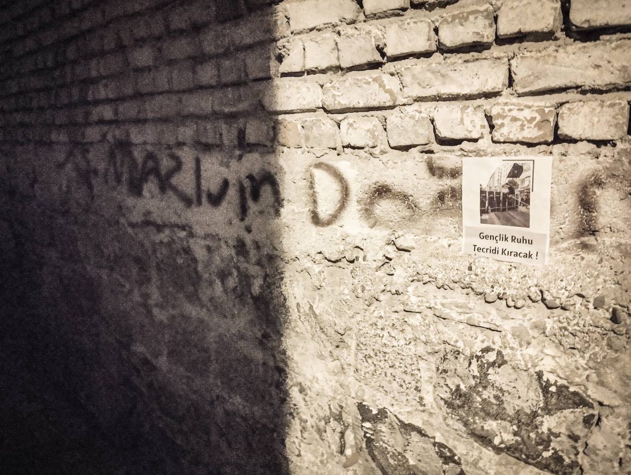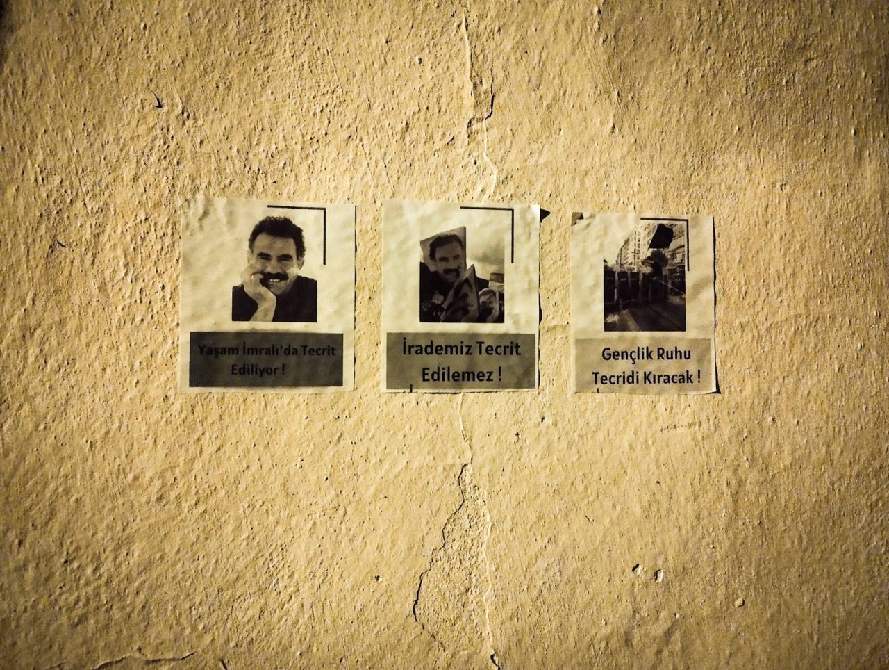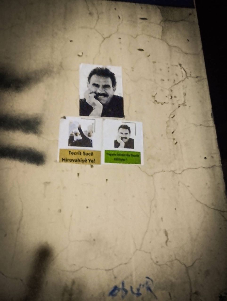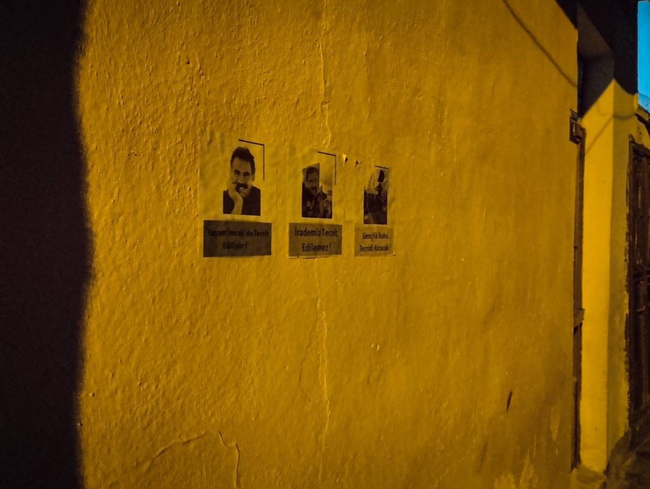 AMED – Yurtsever gençlik Amed’te Önder Apo üzerindeki mutlak tecrit ve işkence sistemine karşı Sur sokaklarında Önder Apo’nun resimlerinin olduğu ve “Gençlik Ruhuyla Tecrit Kırılacak” yazılı etiketler yapıştırdı.