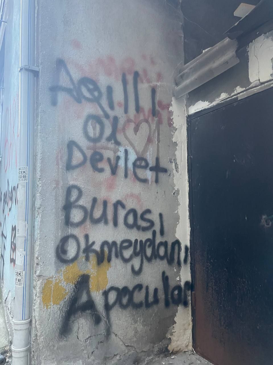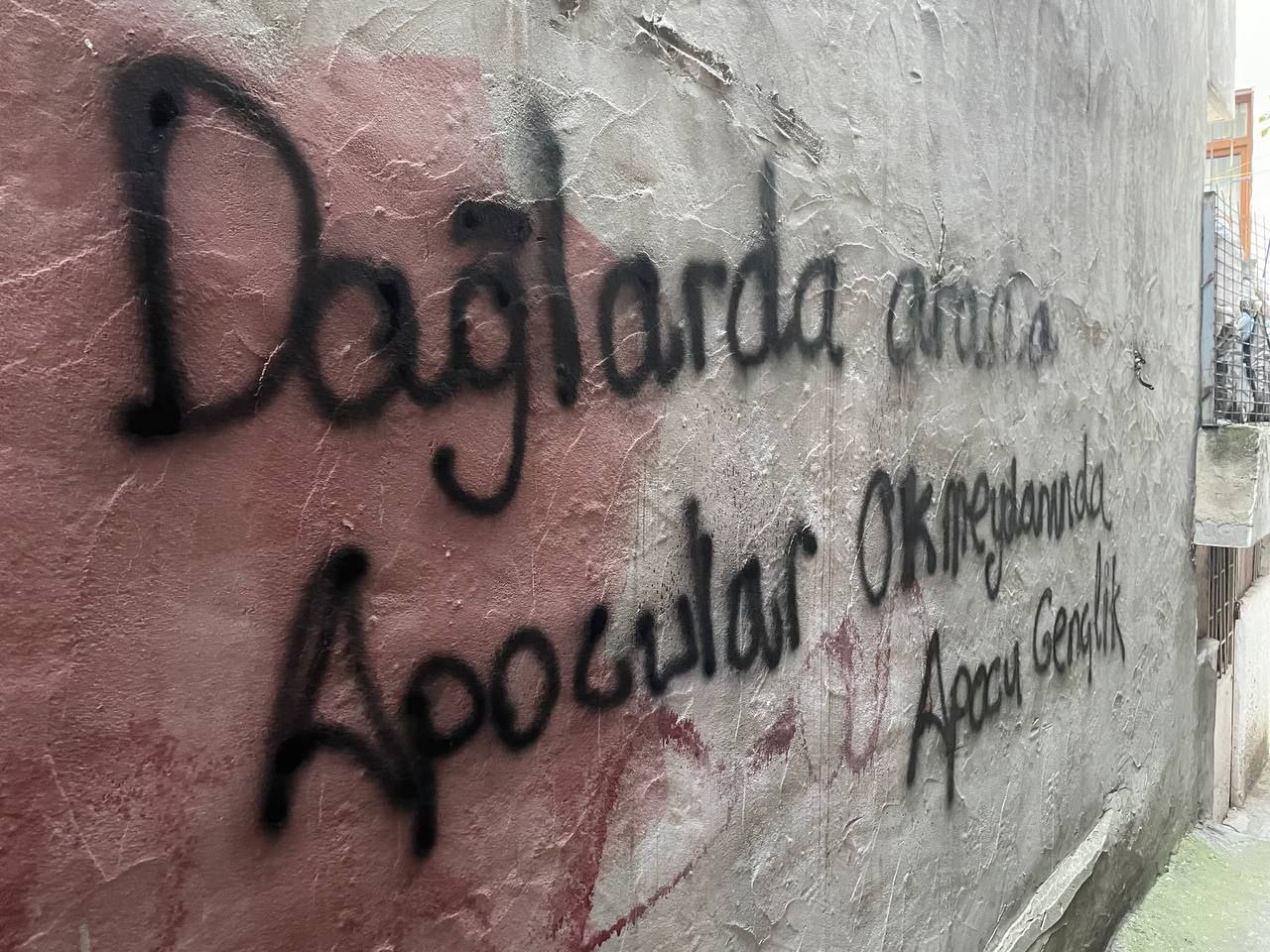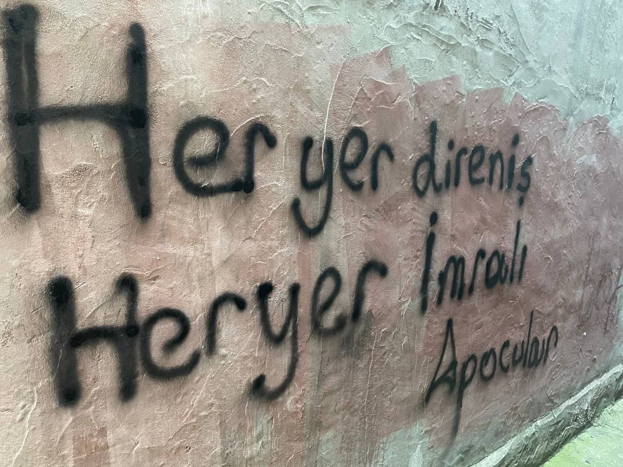 İSTANBUL- İstanbul Okmeydanı’nda Yurtsever Gençlik tarafından Türk Devletinin Önder APO üzerindeki ağırlaştırılmış tecrit politikalarına karşı ve aynı zamanda yaşanan gözaltıları protesto etmek amacıyla mahallerde yazılama eylemi yapıldı. Duvarlarda ” Her Yer Direniş Her Yer İmralı” “Zap Avaşin Metina Bijî Berxwedana Gerilla” sloganları yazıldı.