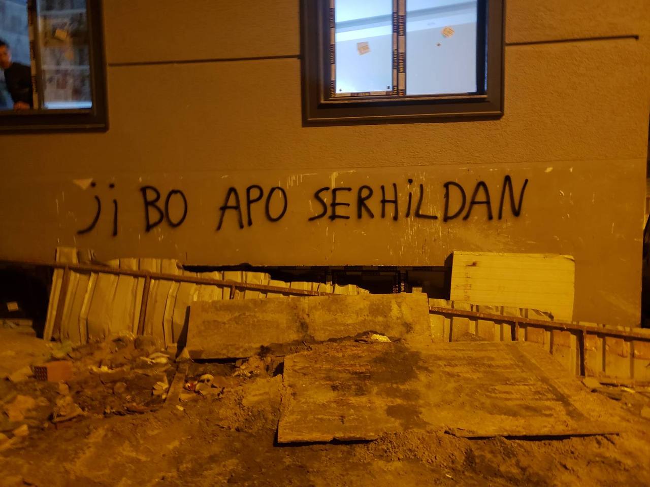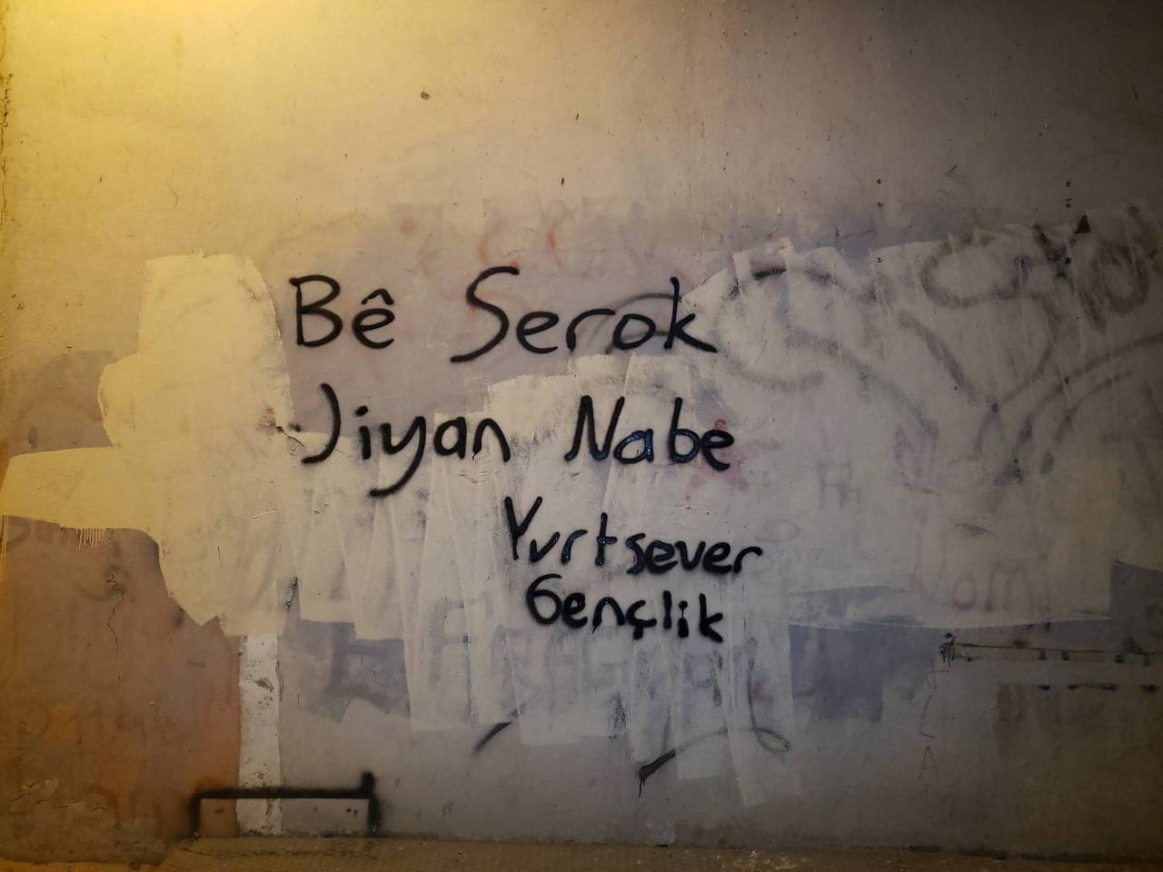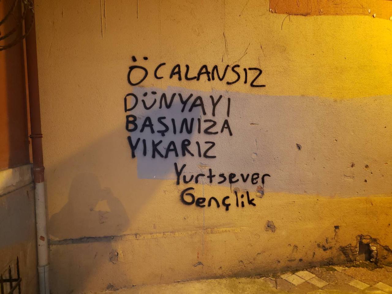 Yurtsever Gençlik duvarlara “Öcalan’sız Dünyayı Başınıza Yıkarız” “Devlet Halkın Canına Çöktü” yazdı.