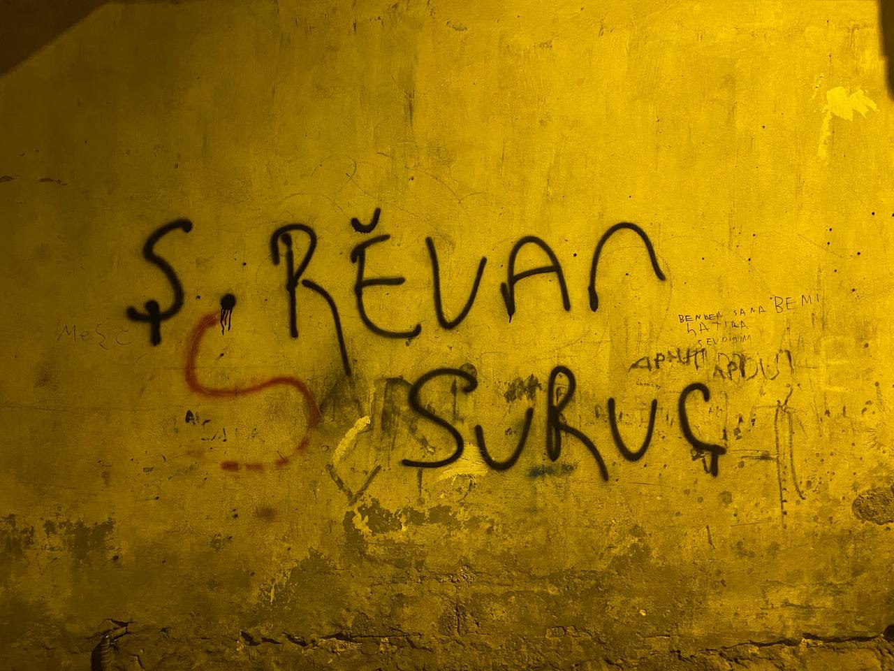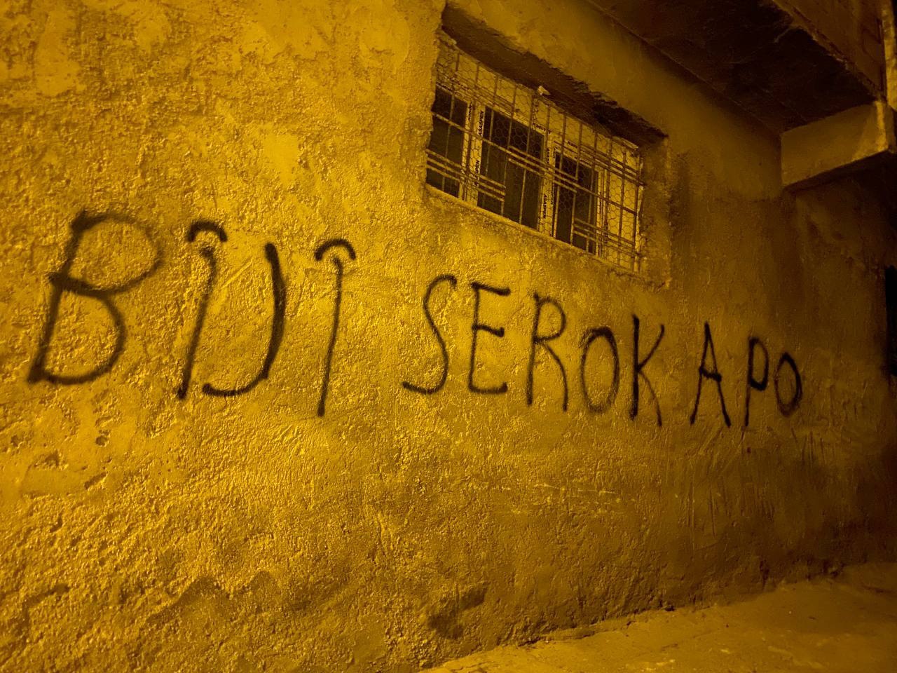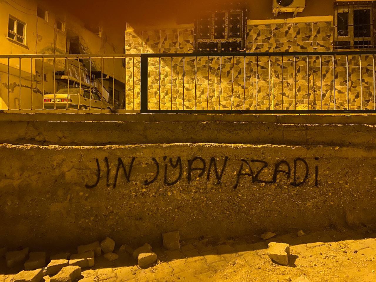 Gençler, duvarlara Kürtçe ve Türkçe, “Şehit Namirin”, “Rêvan Suruç” Bijî Serok APO” Gerilla Onurumuzdur” “Jin Jiyan Azadî” yazdı.