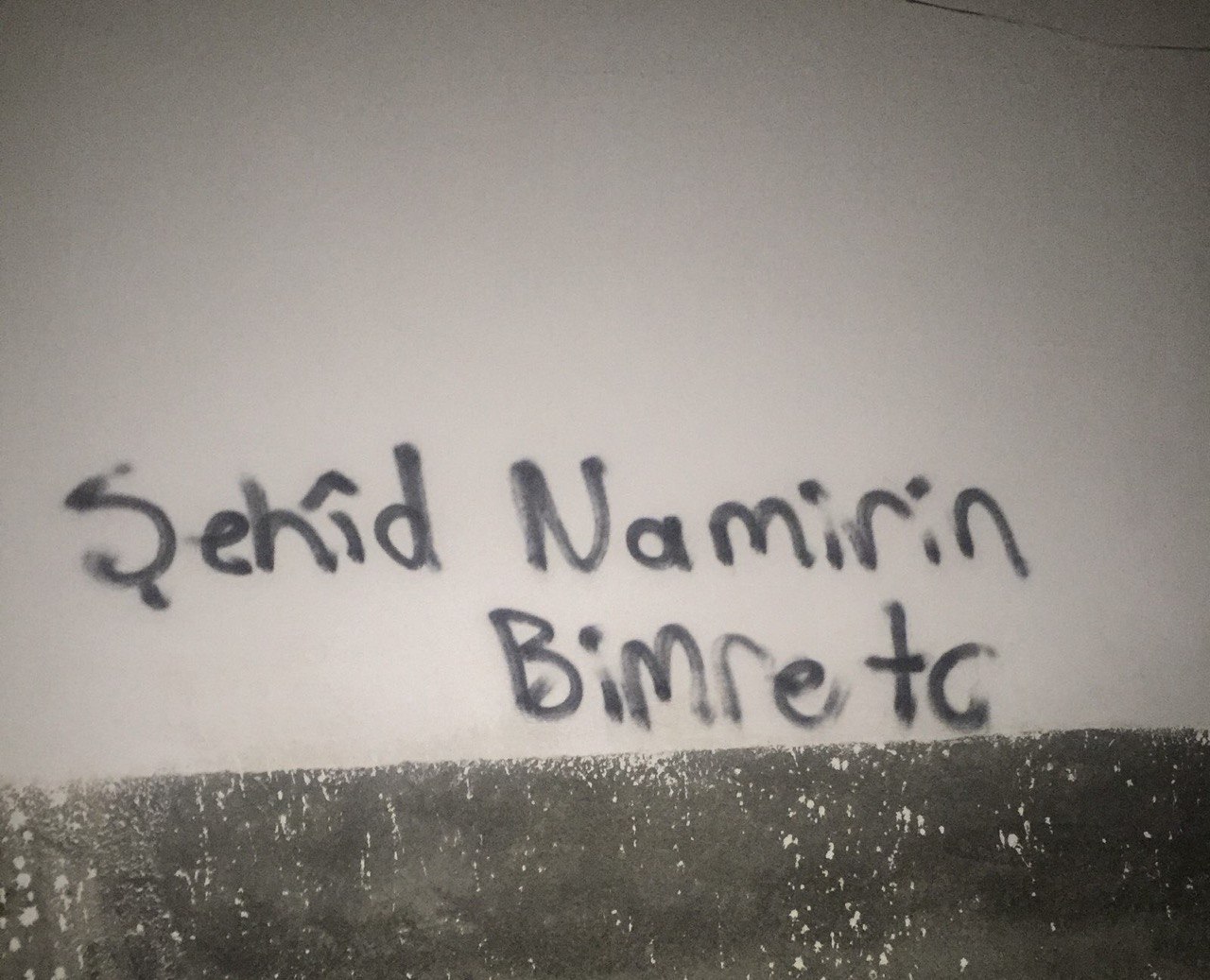 MARDÎN- Yurtsever Gençlik üyeleri, Ş. Tolhildan Tekman’nın (Yılmaz Uzun’un) naaşının şehaditinden 3 yıl sonra bir kargo kutusunda ailesine verilmesini, Mardin Qoser sokaklarında duvarlara yazdıkları sloganlarla protesto etti.