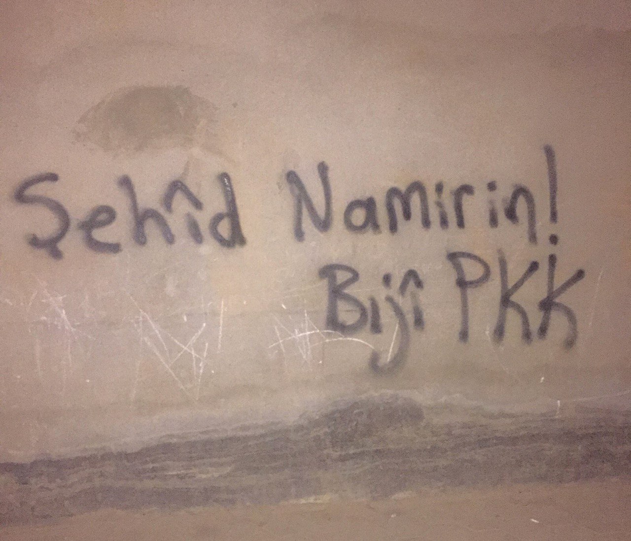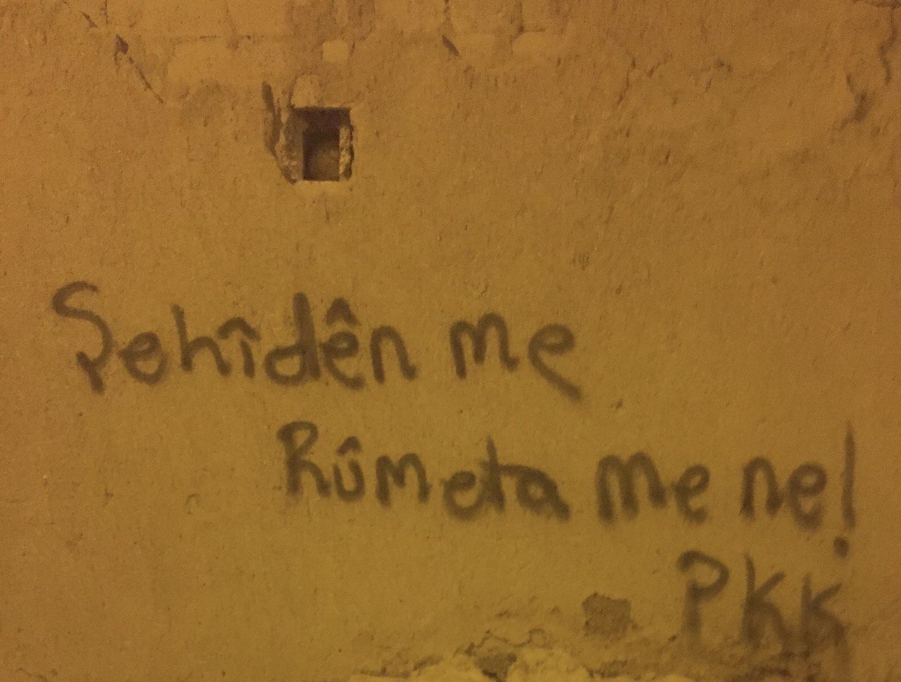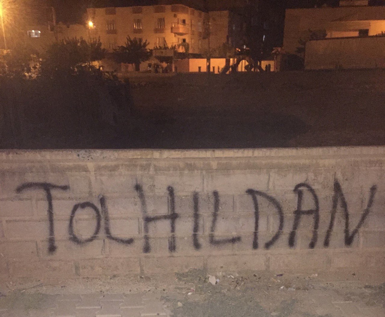 Gençlik üyeleri, duvarlara Kürtçe, “Sözümüz şehidin adına” “Şehitler ölmez, Kahrolsun TC” “Tolhildan Tekman” “Yaşaasın HPG” yazdı.