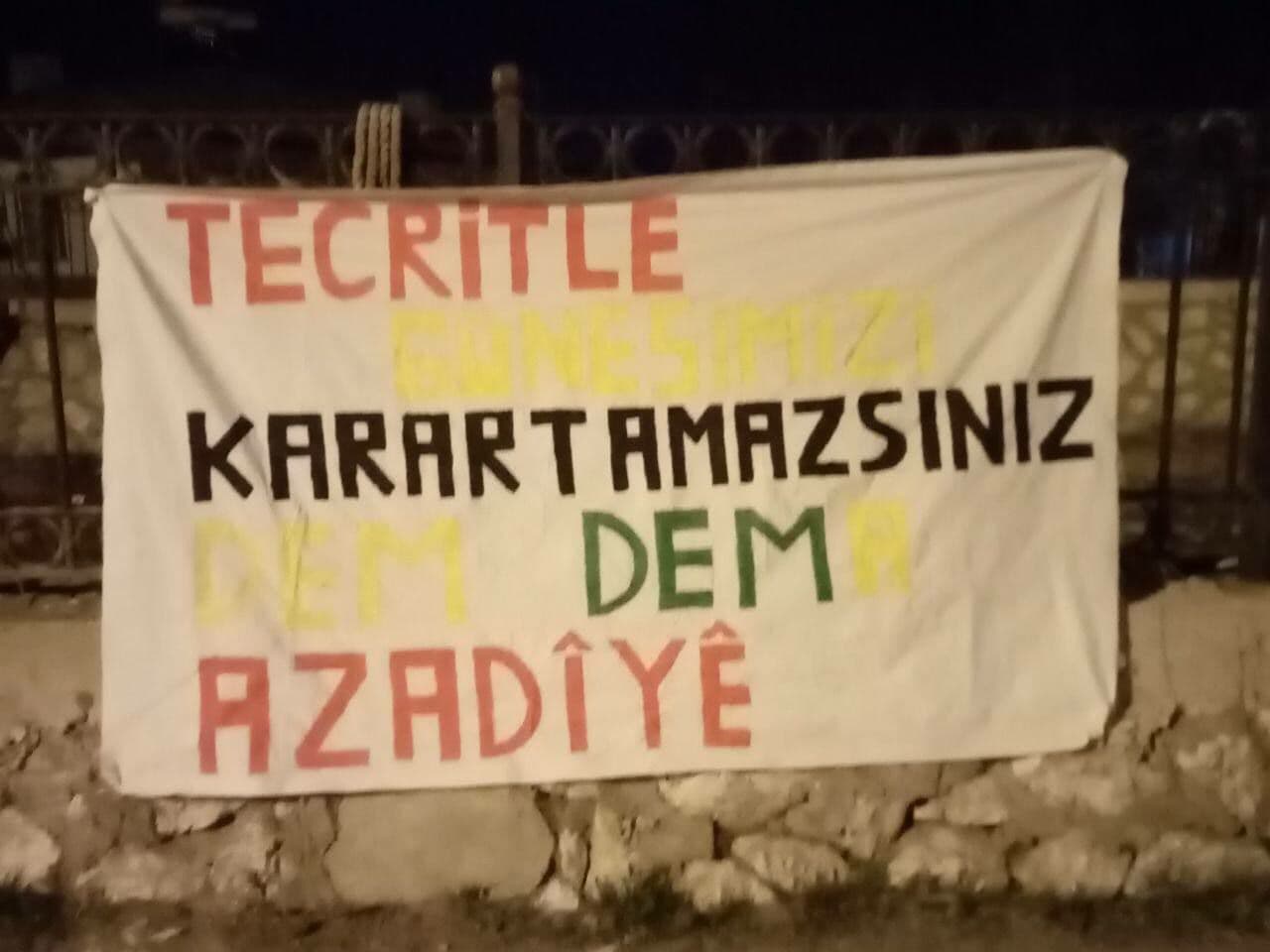 Yurtsever gençlik 4 Nisan kutlaması kapsamında “Tecritle Güneşimizi Karartamazsınız, Dem Dema Azadîyê ye” pankartı da astı.