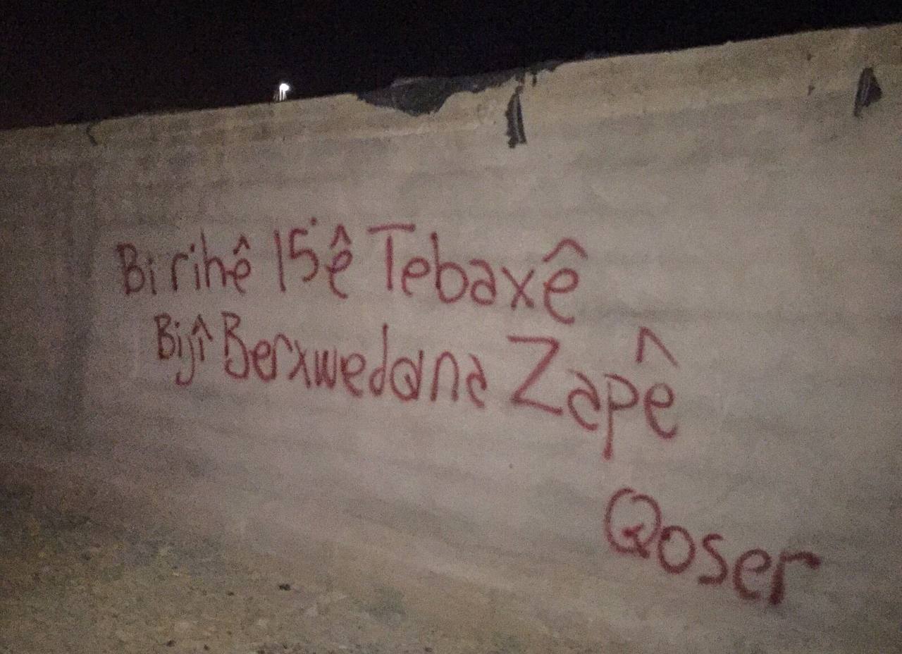 Yine Mêrdîn’ Qoser ilçesinde 15 Ağustos Diriliş Bayramını kutlamak ve YPS nin başlatmış olduğu ‘ Zafer Hamlesi’ni” selamlamak amacıyla birçok mahallede yazılama çalışması yapmıştır.”